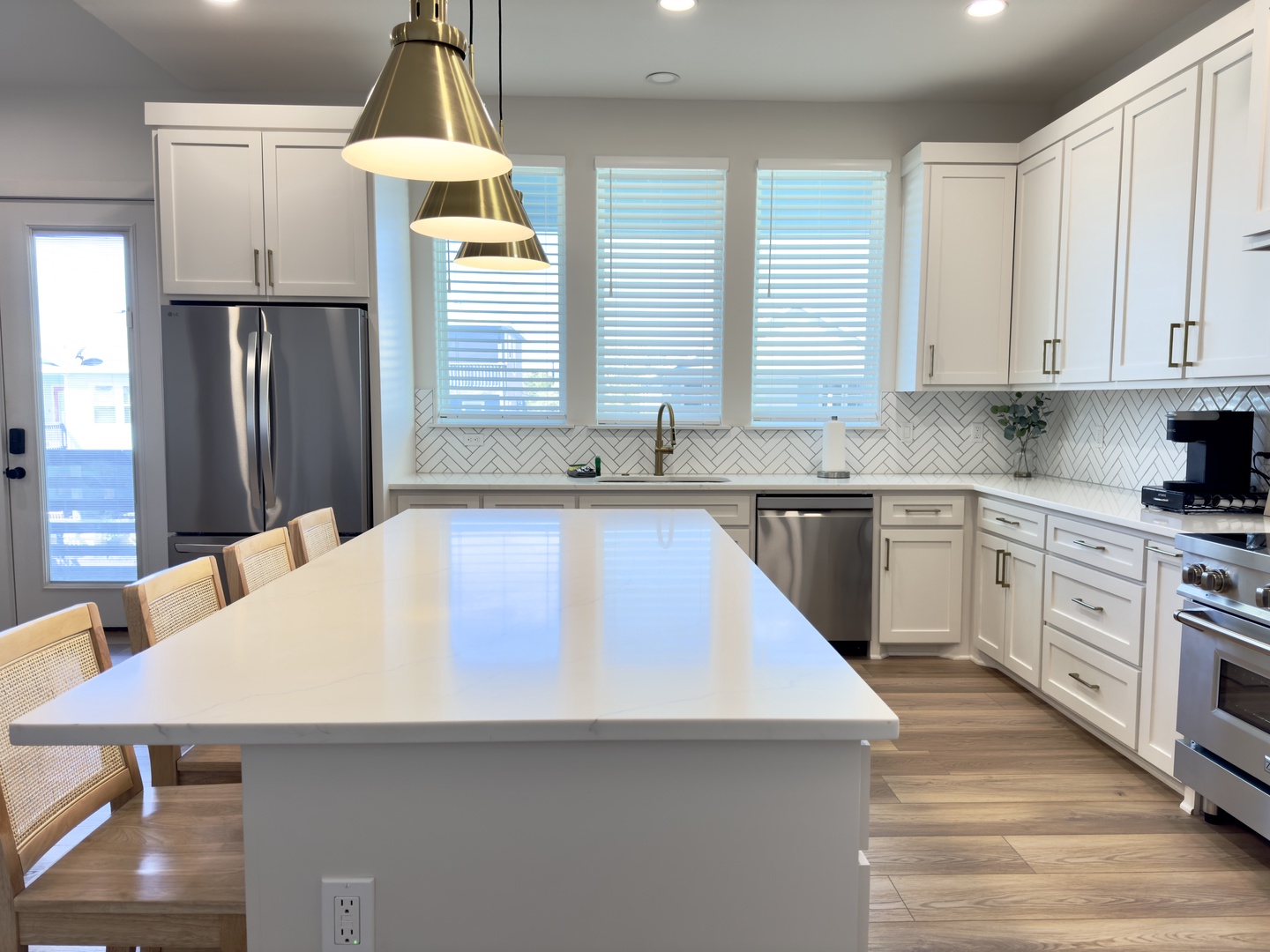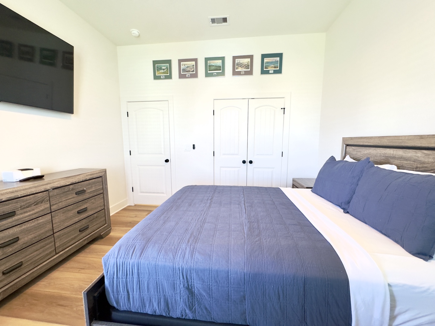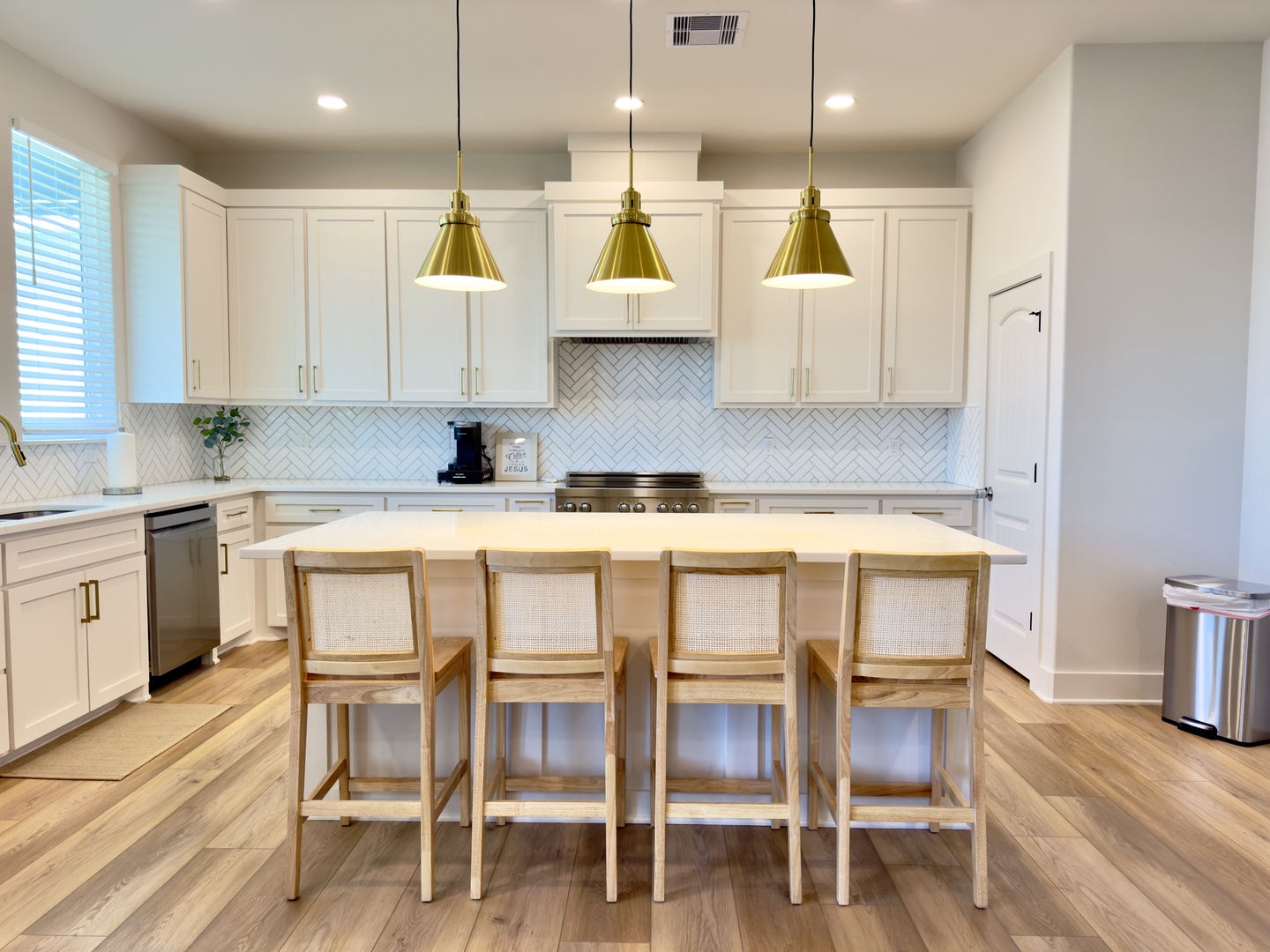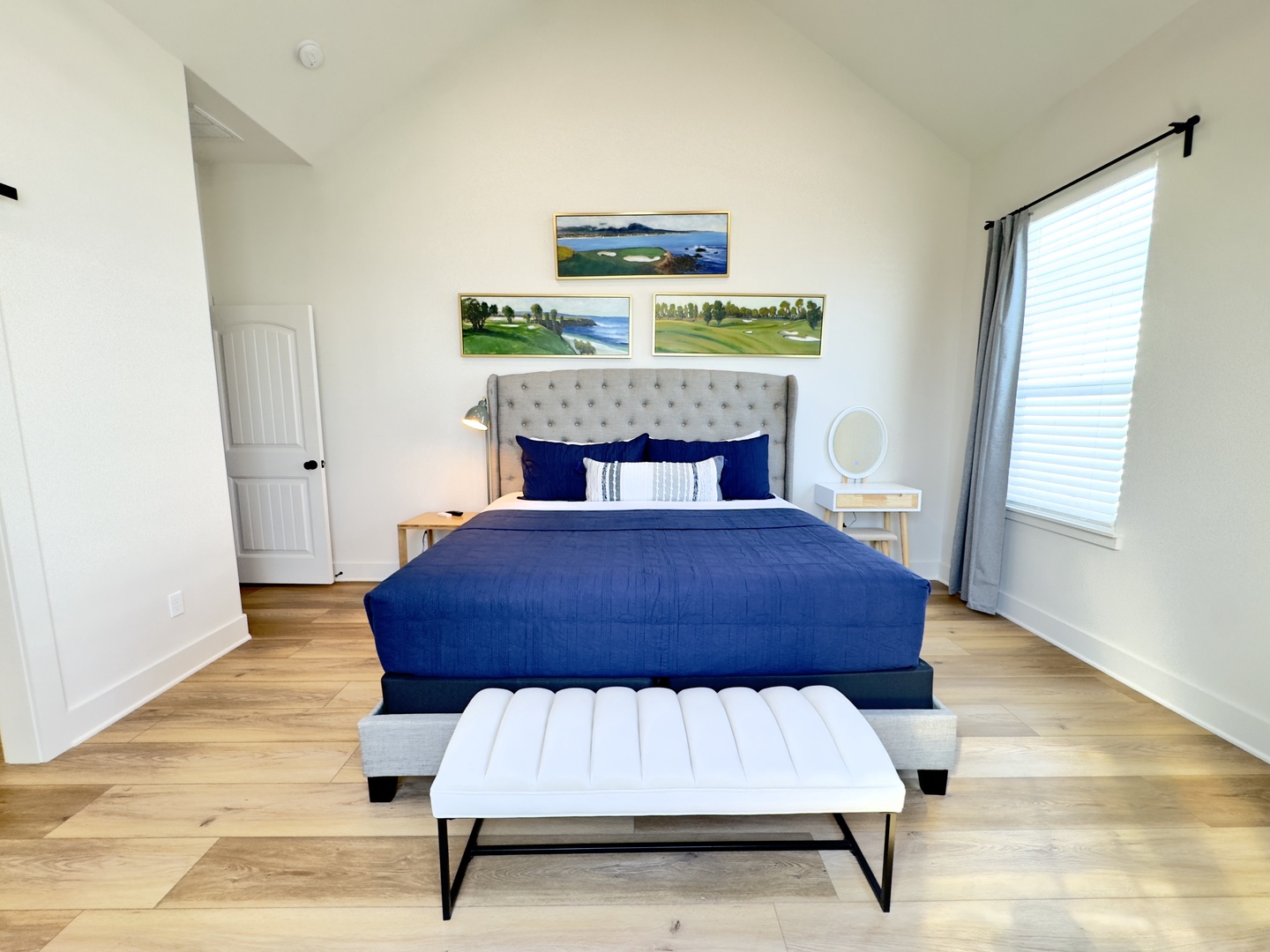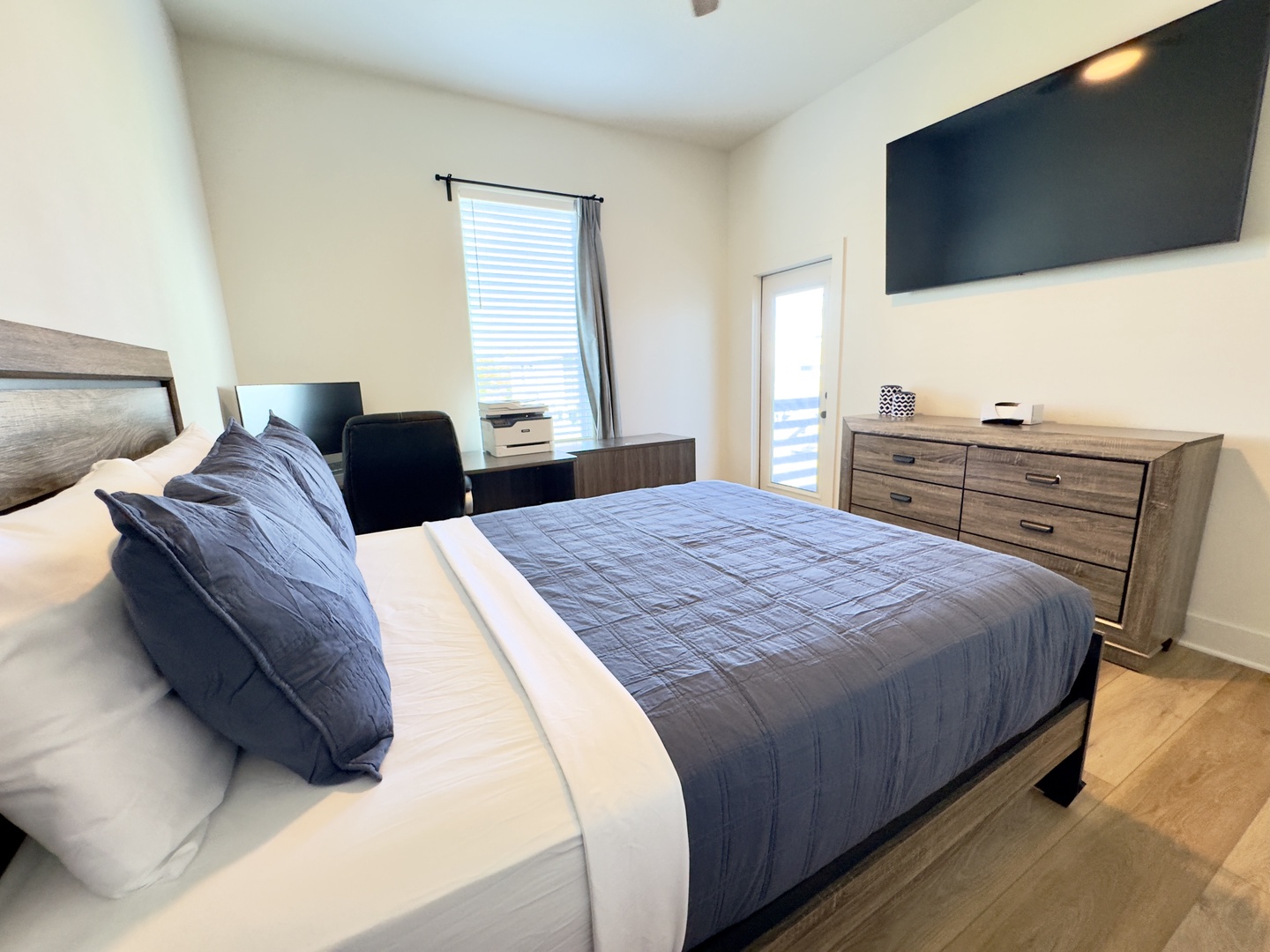 This three bedroom, two bathroom home is fully stocked with everything you need for your home away from home! The master suite has a king bed. One of the guest rooms features three twin beds (one is a bunk). The other guest bedroom has a queen bed and features a desk for a work station. Each room also has a TV. There is a washer and dryer too!