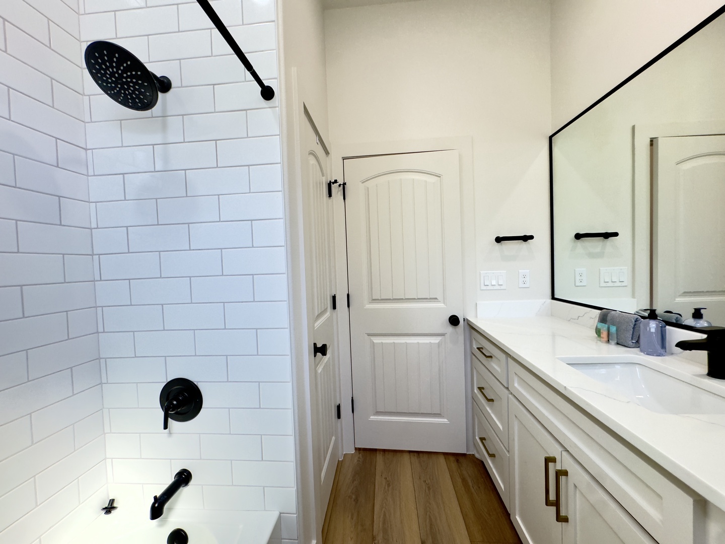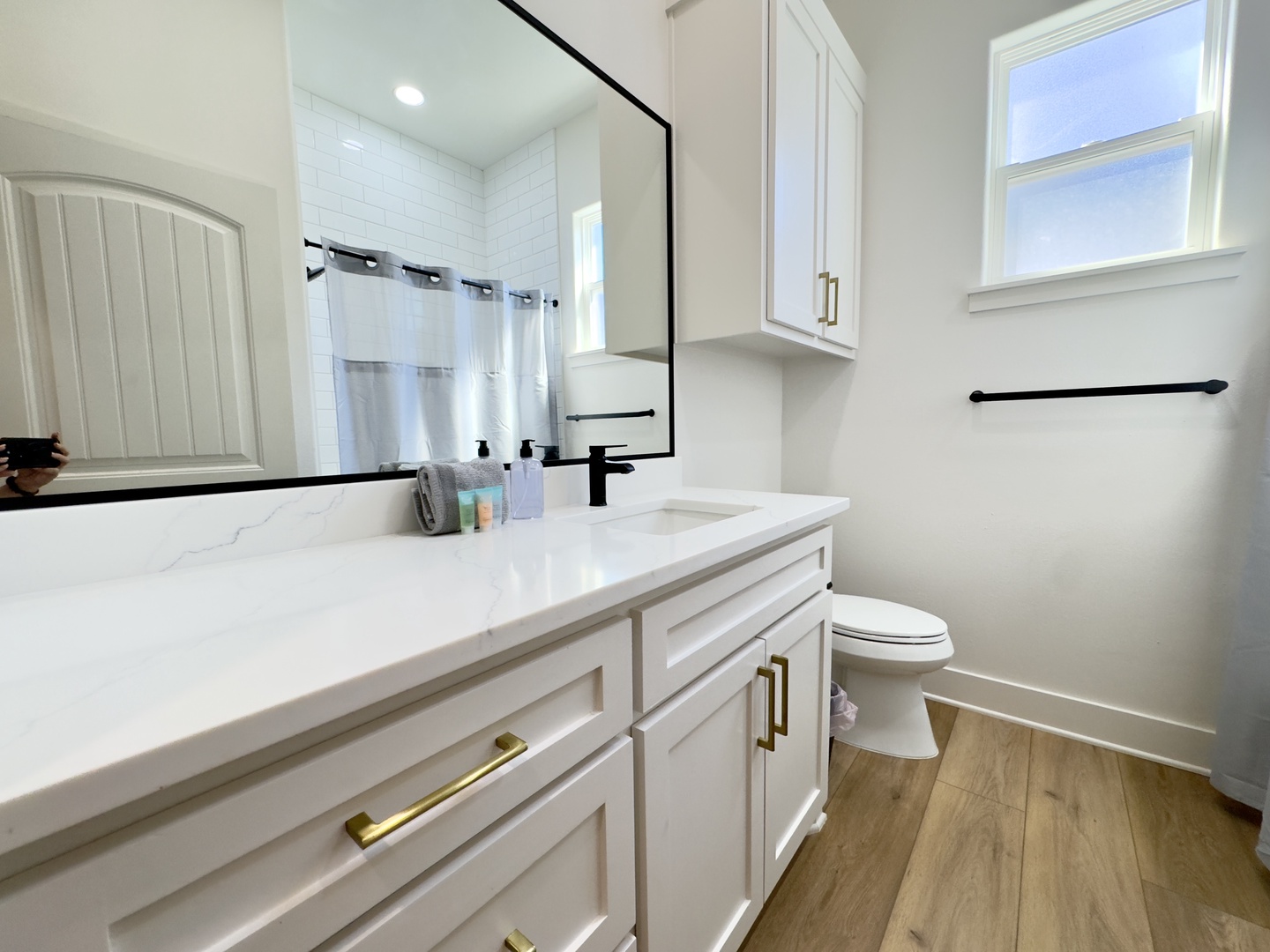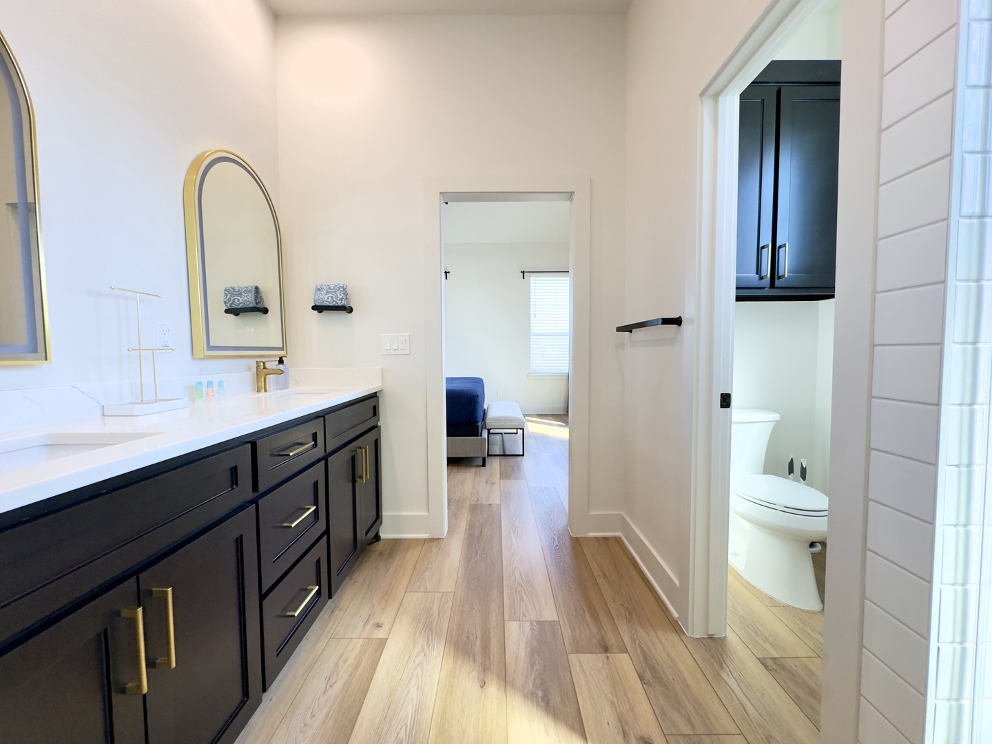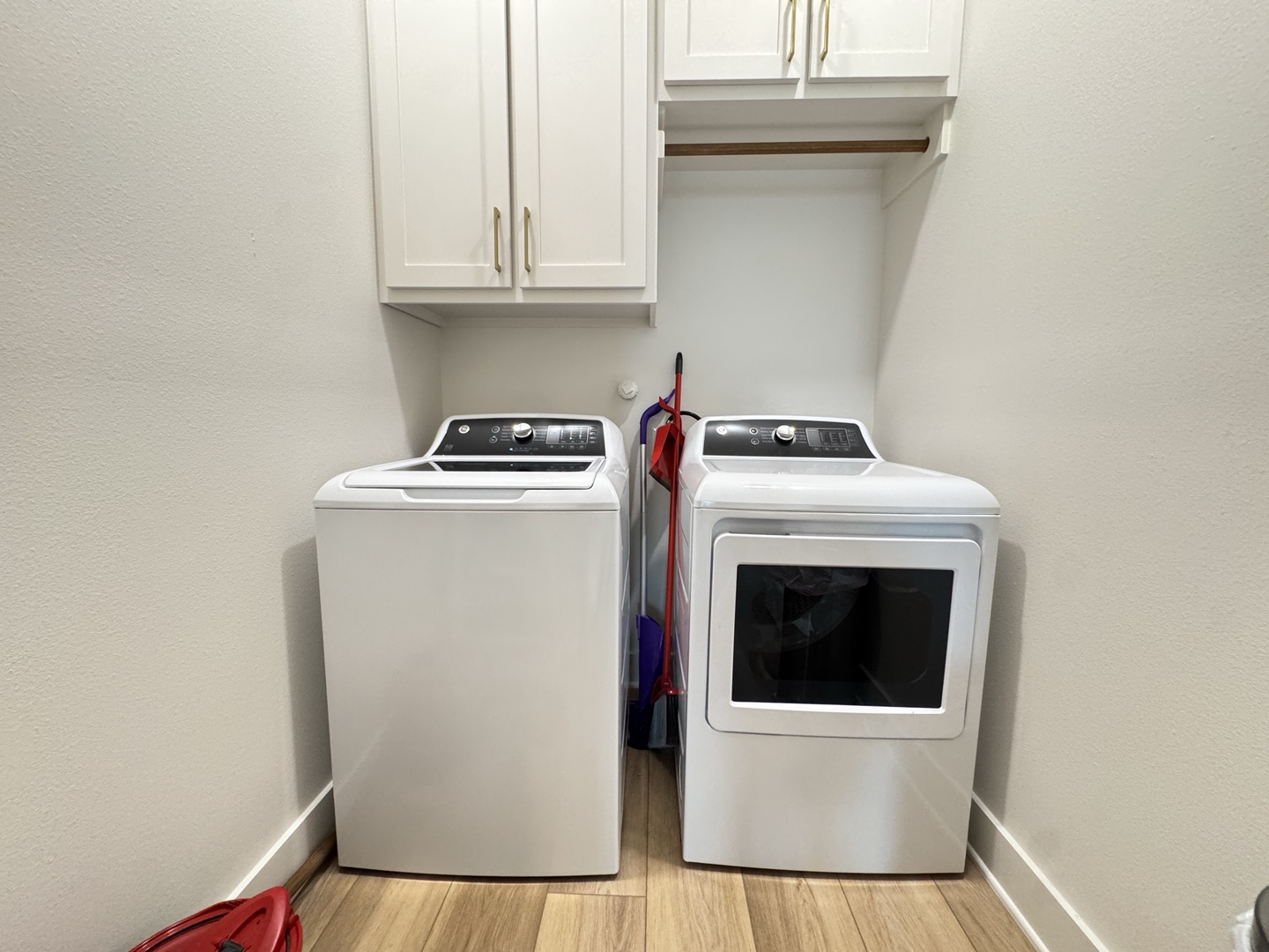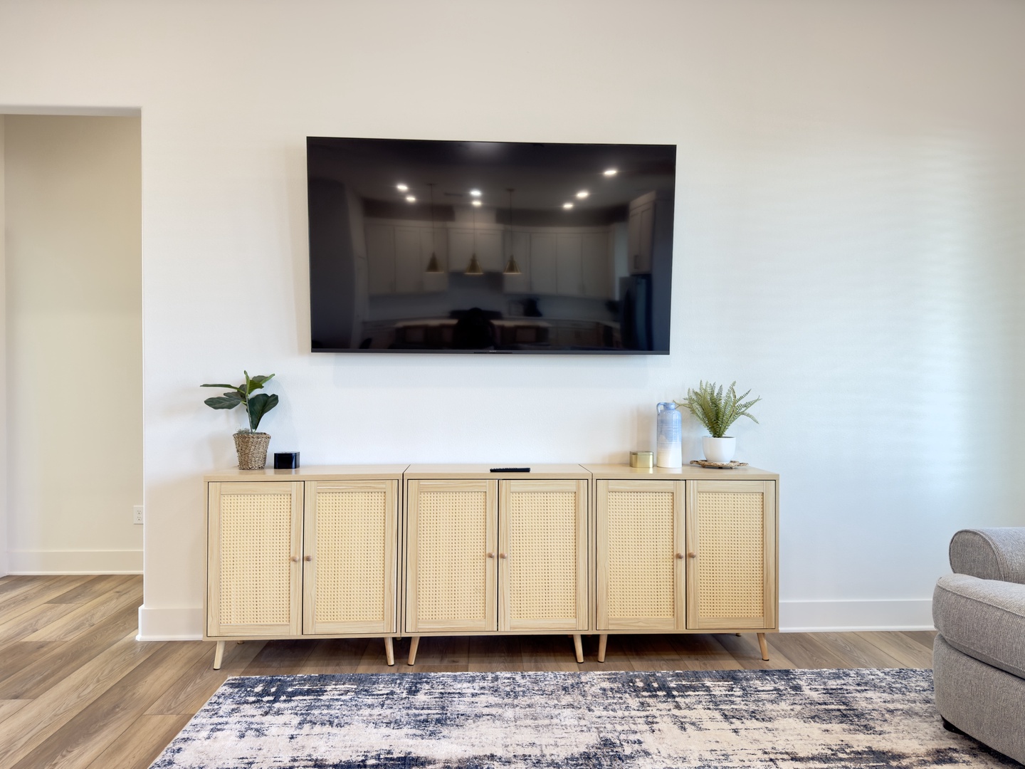 This three bedroom, two bathroom home is fully stocked with everything you need for your home away from home! The master suite has a king bed. One of the guest rooms features three twin beds (one is a bunk). The other guest bedroom has a queen bed and features a desk for a work station. Each room also has a TV. There is a washer and dryer too!
