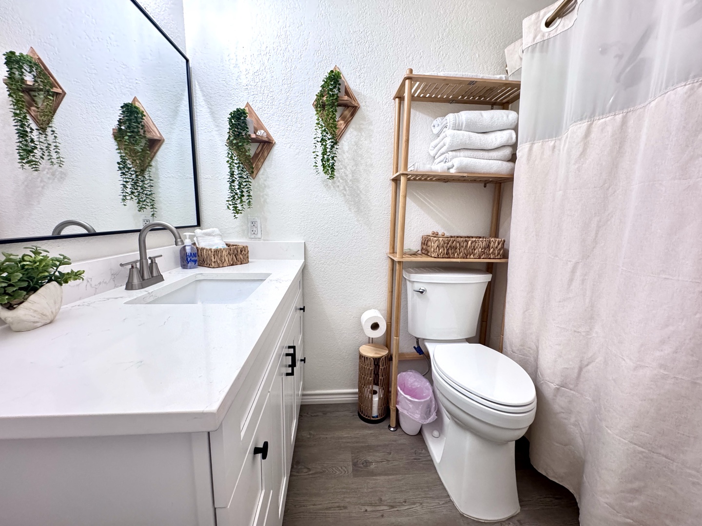 A complimentary starter set of toilet paper, paper towels, laundry soap, trash bags, and hospitality soaps is provided. For longer stays, consider bringing extras or shop locally.