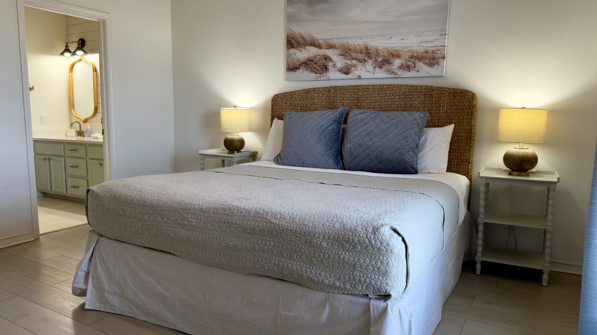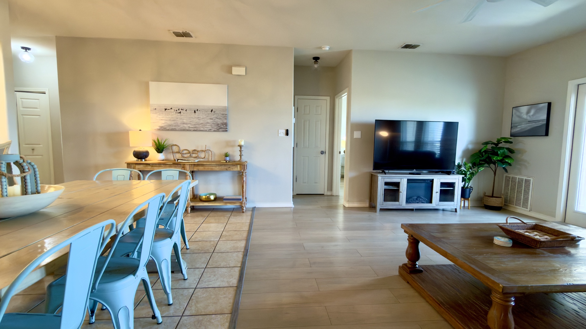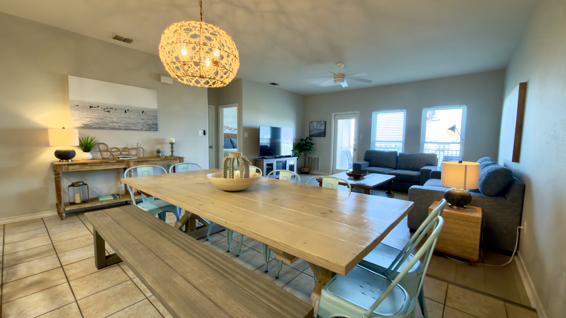 Kick back and relax in this calm, stylish 3 bedroom space that sleeps 9! This home has room for everyone with a king in the master, a queen and twin in one guest room, and a full/twin bunk and twin in another room. At the unit you can enjoy a drink on your private balcony that overlooks the water, hang out by the pool, or catch some fish off the deck! When you're ready for more adventure you can head to the beach that's just down the street or check out some of the local shops and restaurants.