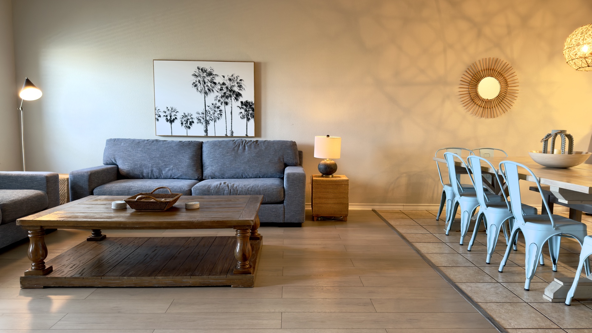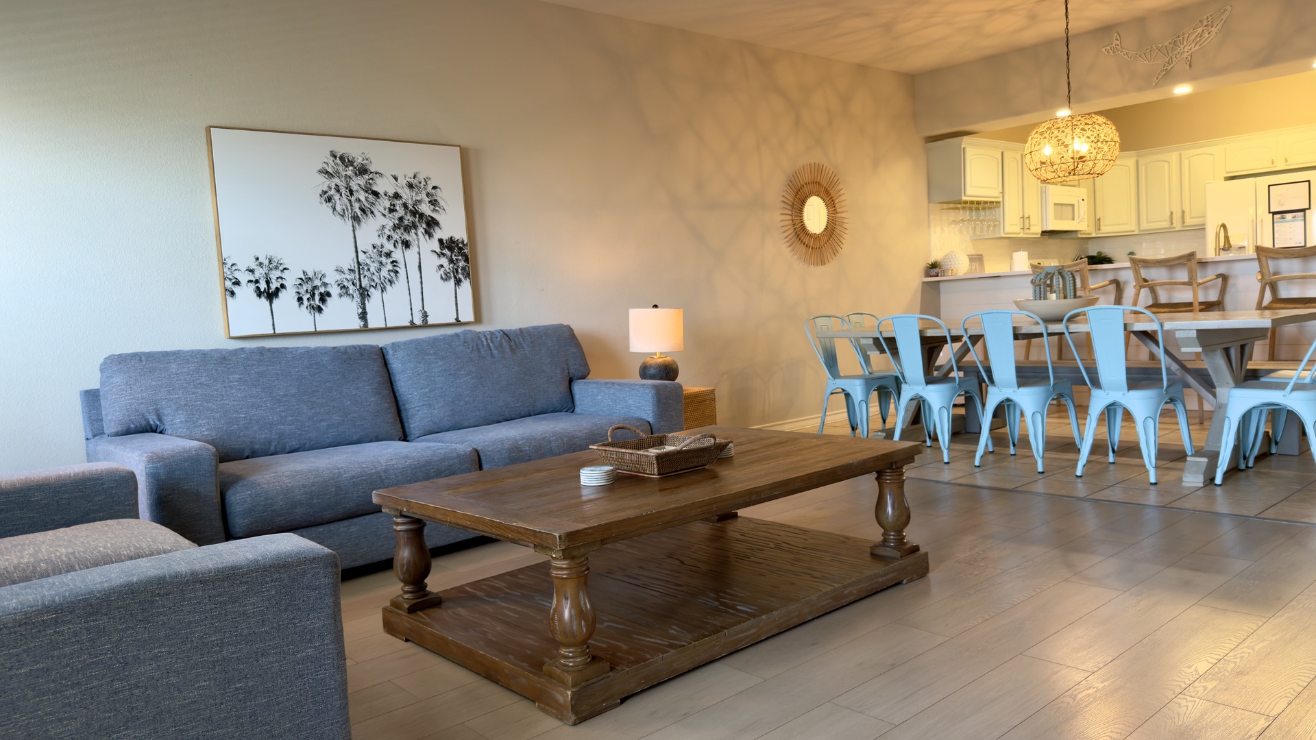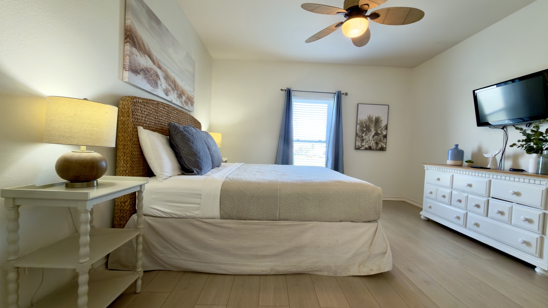 Kick back and relax in this calm, stylish 3 bedroom space that sleeps 9! This home has room for everyone with a king in the master, a queen and twin in one guest room, and a full/twin bunk and twin in another room. At the unit you can enjoy a drink on your private balcony that overlooks the water, hang out by the pool, or catch some fish off the deck! When you're ready for more adventure you can head to the beach that's just down the street or check out some of the local shops and restaurants.