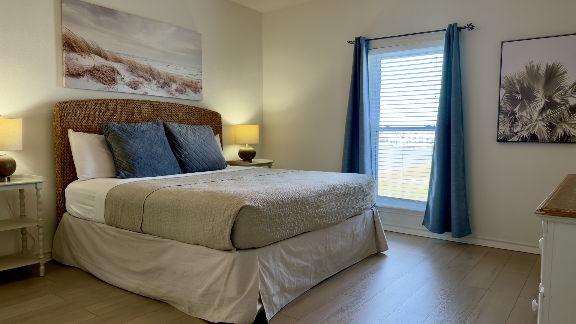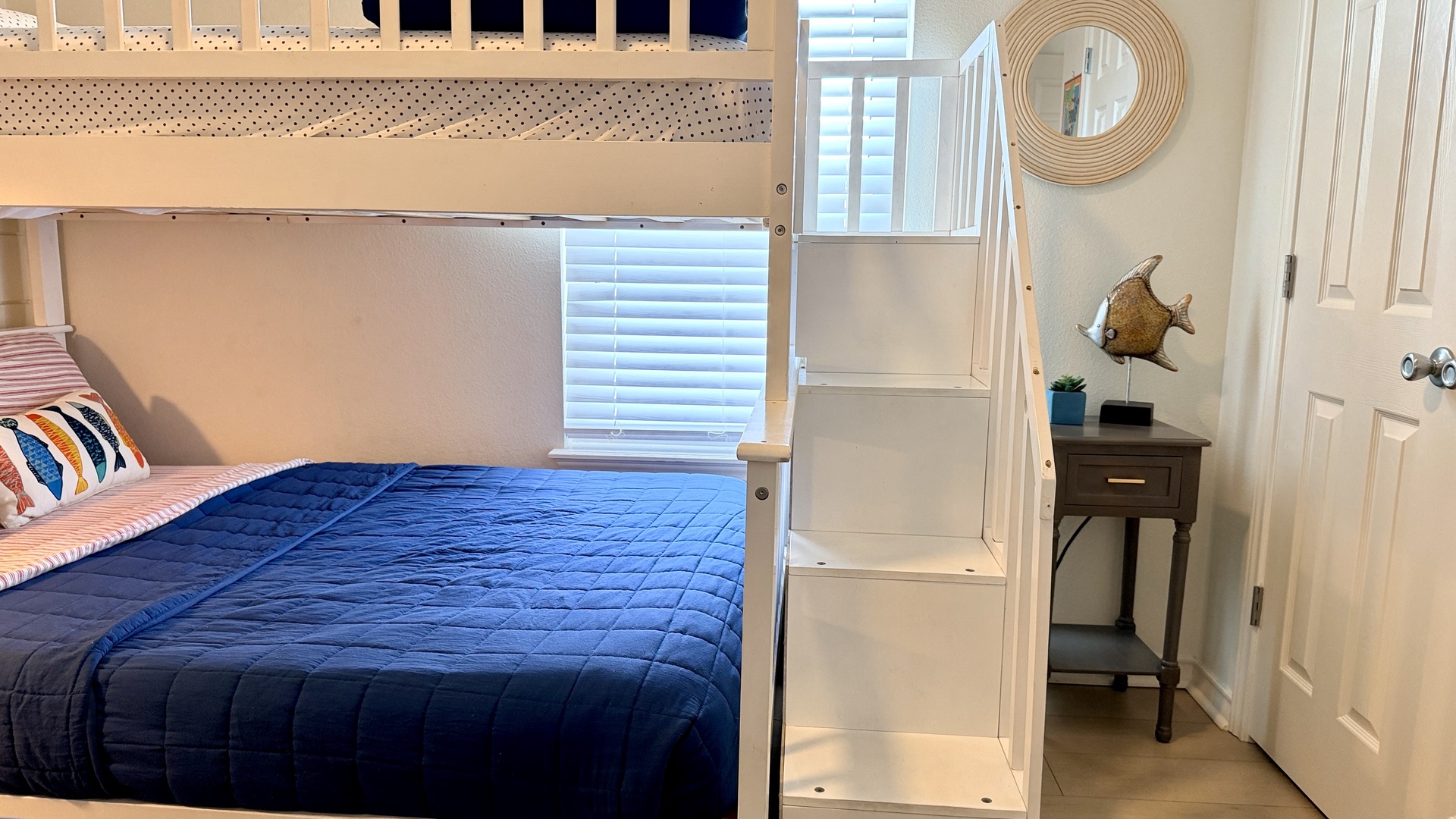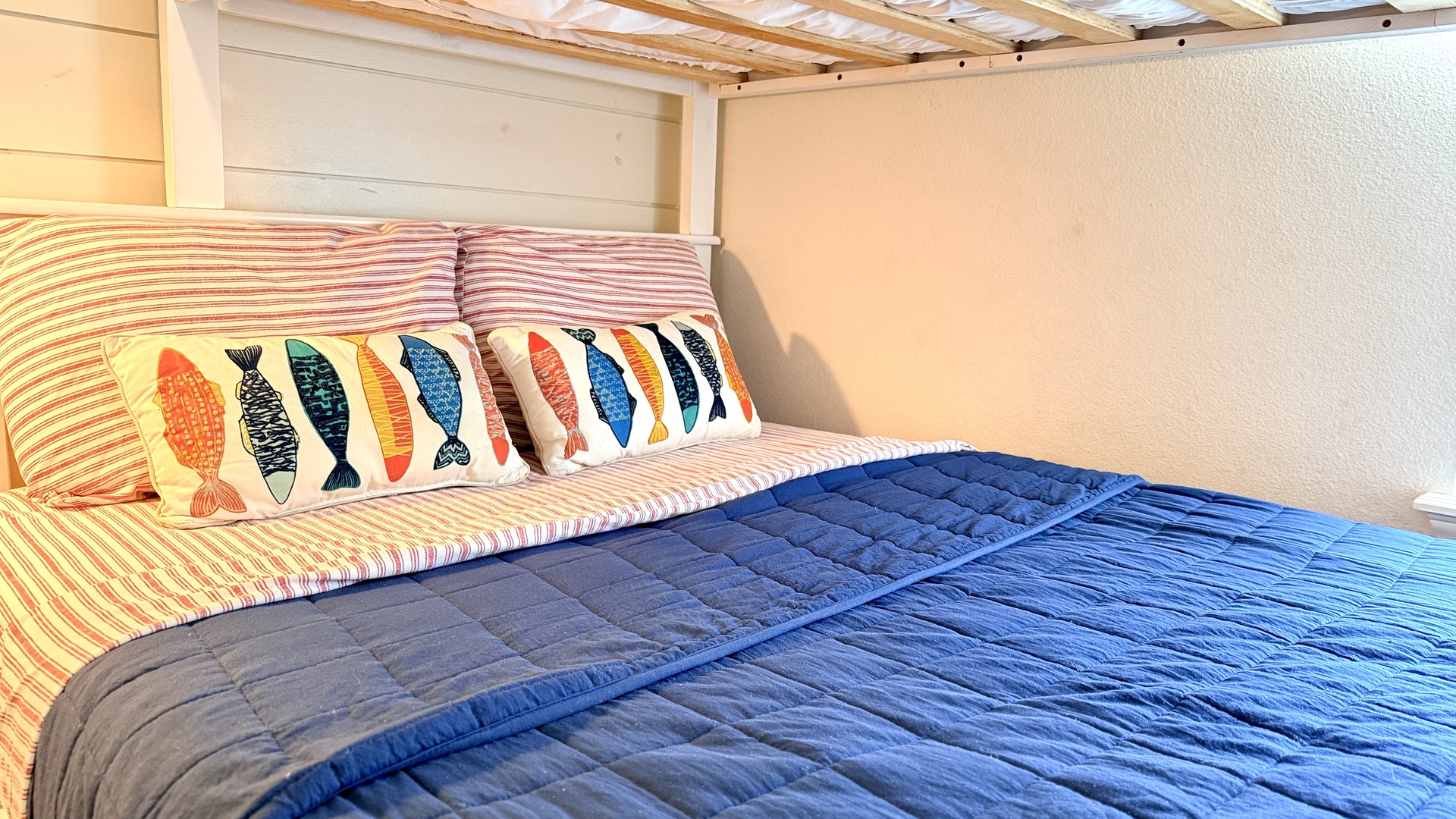 This home features a king bed in the bedroom. A queen and single twin in one guest room, and a bunk and extra twin in the third in the other room. This sleeps 9 guests. Per city permit, we cannot exceed 9.