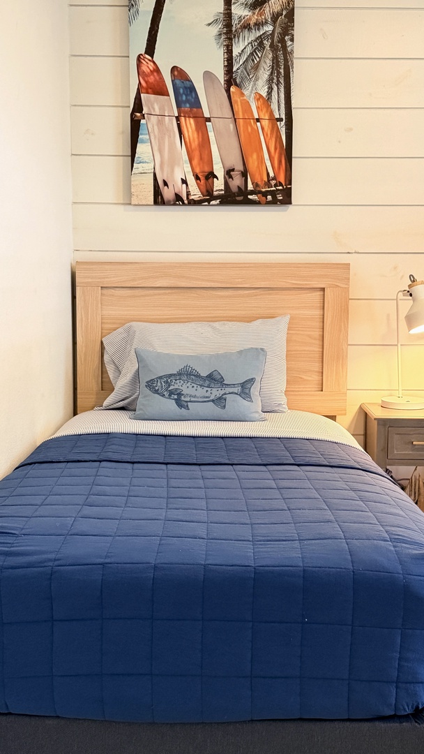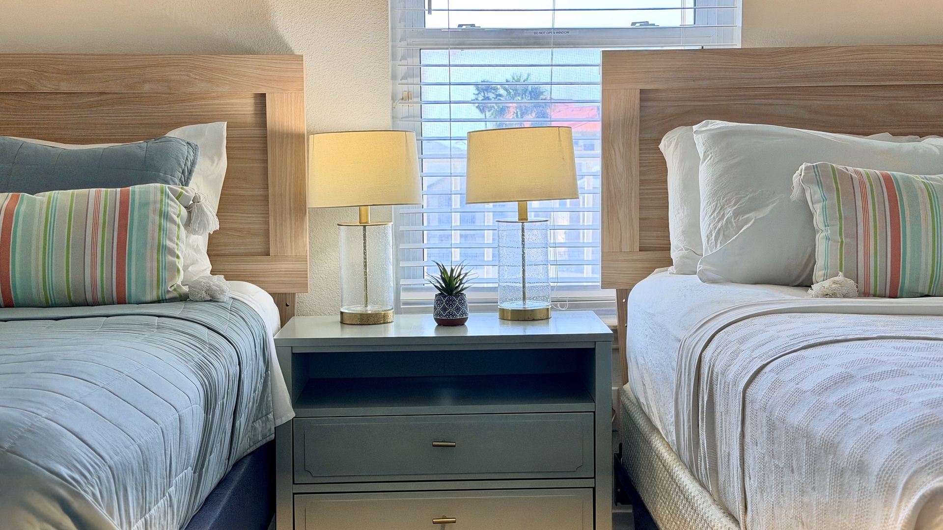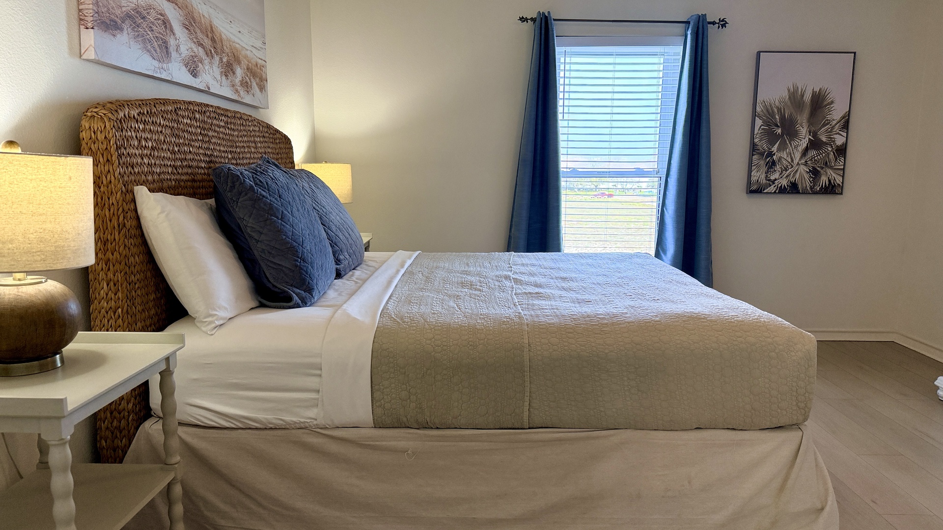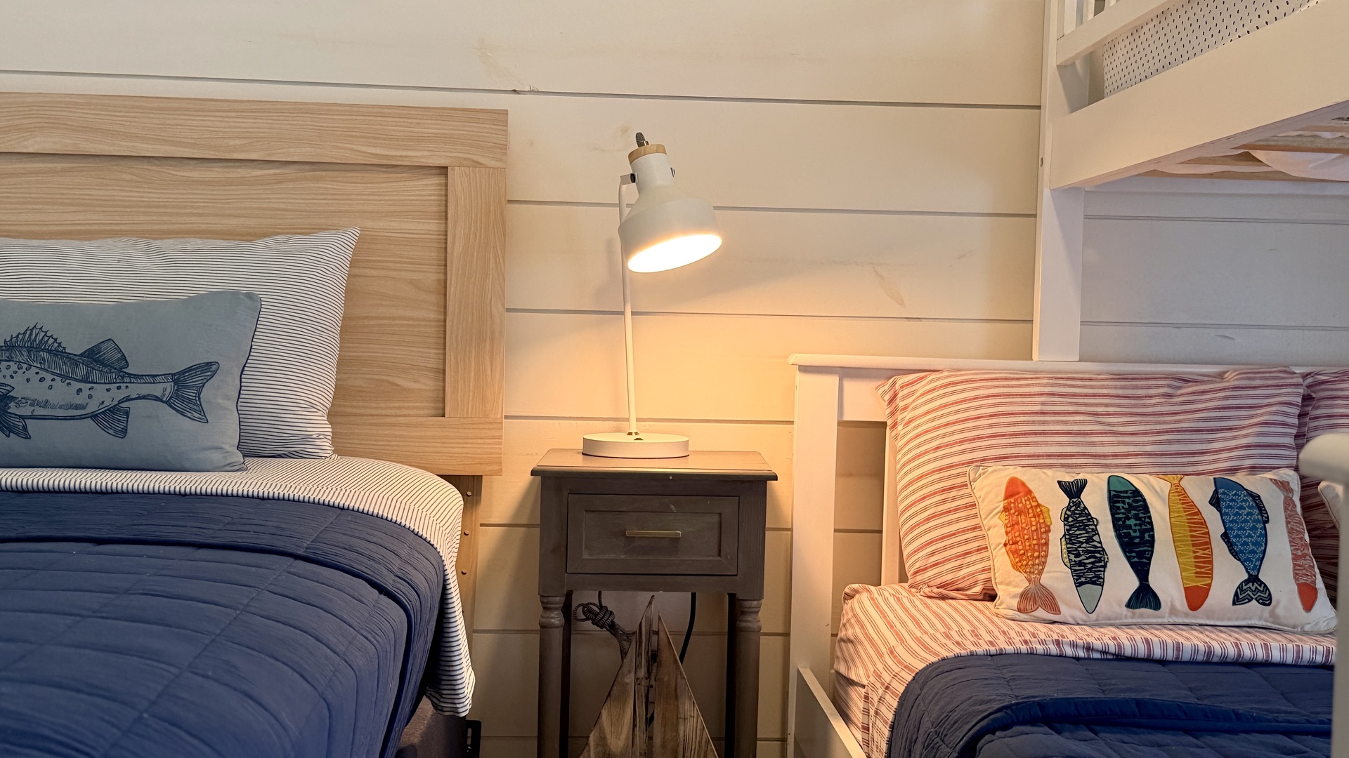 This home features a king bed in the bedroom. A queen and single twin in one guest room, and a bunk and extra twin in the third in the other room. This sleeps 9 guests. Per city permit, we cannot exceed 9.