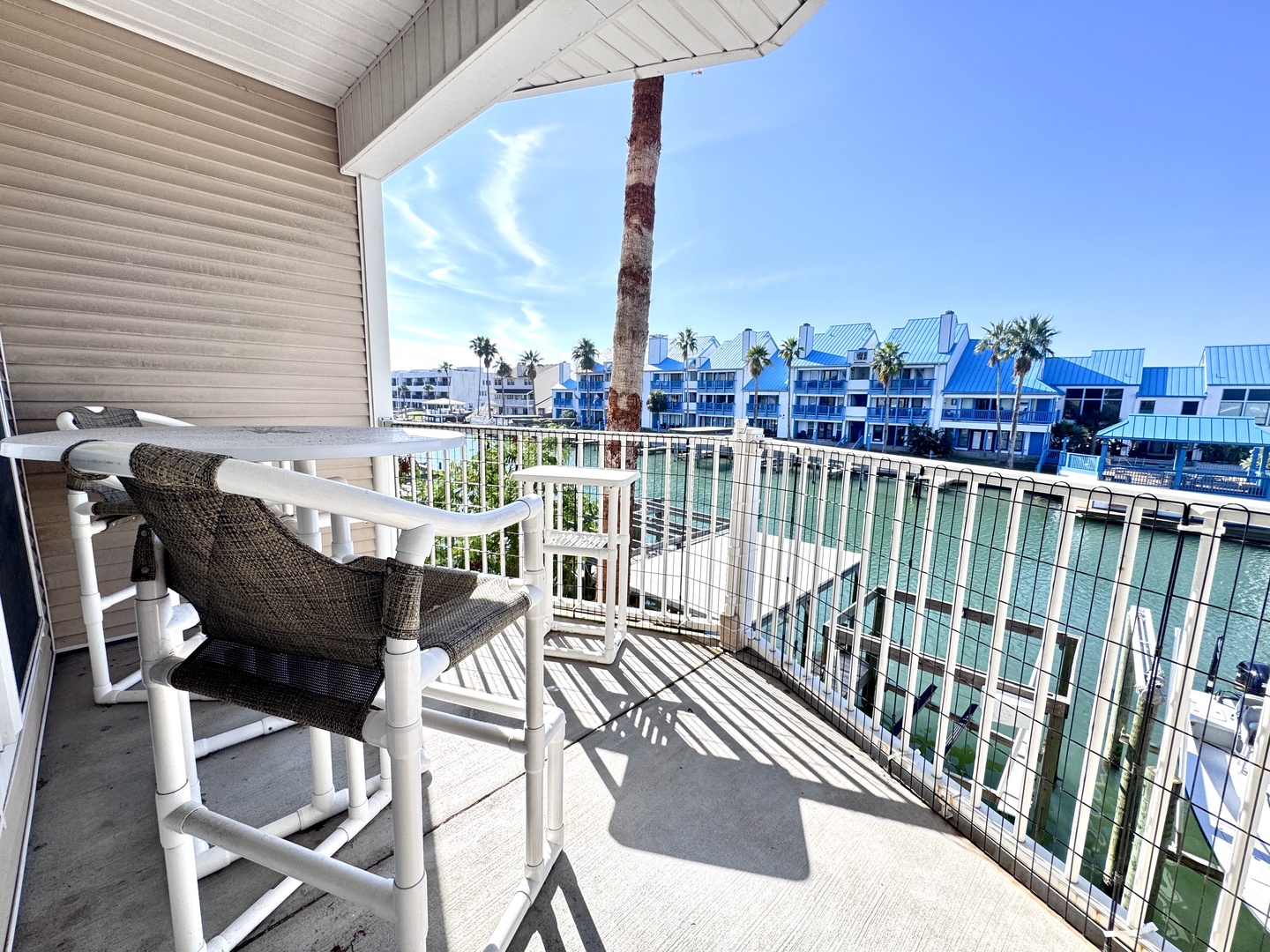 Peaceful and centrally-located condo with a beautiful canal view . Grab your favorite someone and enjoy your favorite drink on the water front balcony or relax in the evening at the pool after a long day at the nearby beach. This is a well stocked 2 bedroom unit featuring a king, queen, and queen couch bed in the living room to sleep a total of 6. This second floor unit features an elevator, so no need for the stairs after visiting the local island shops and restaurants!