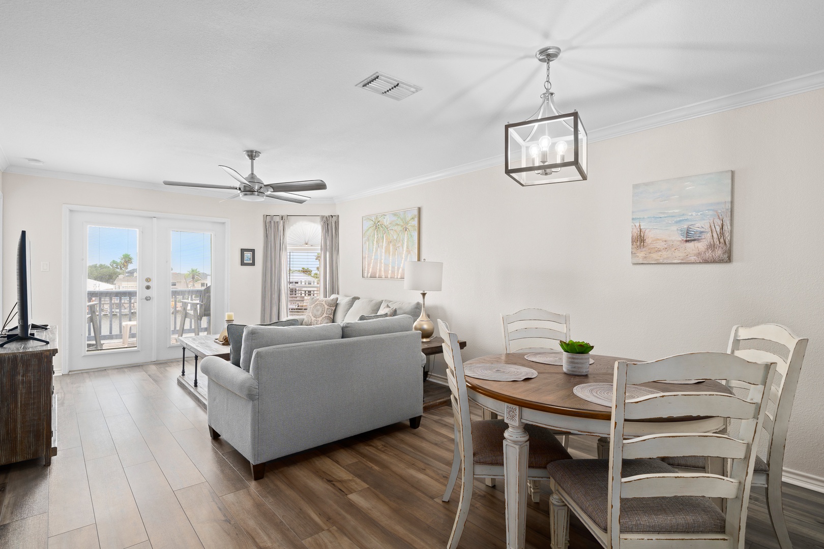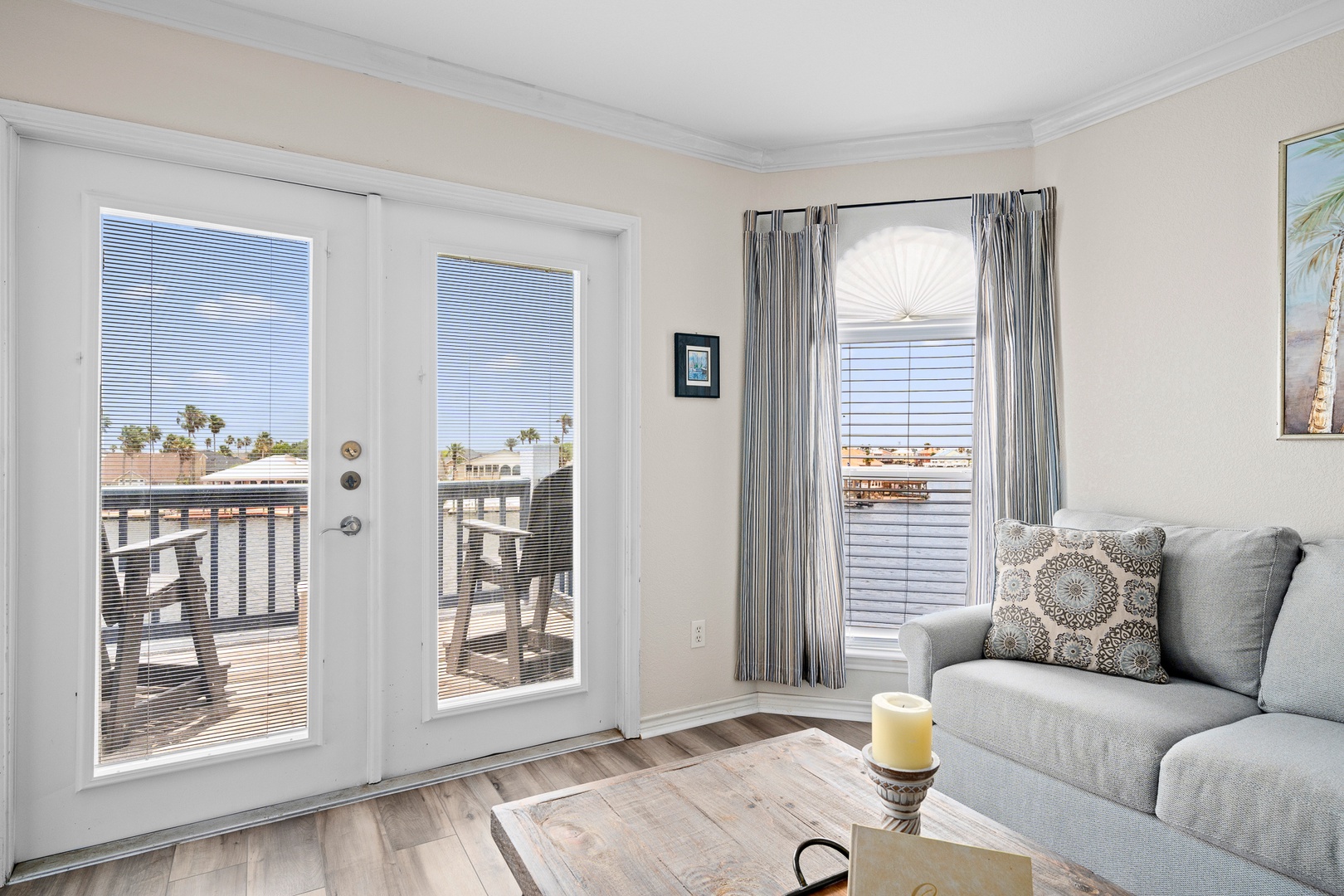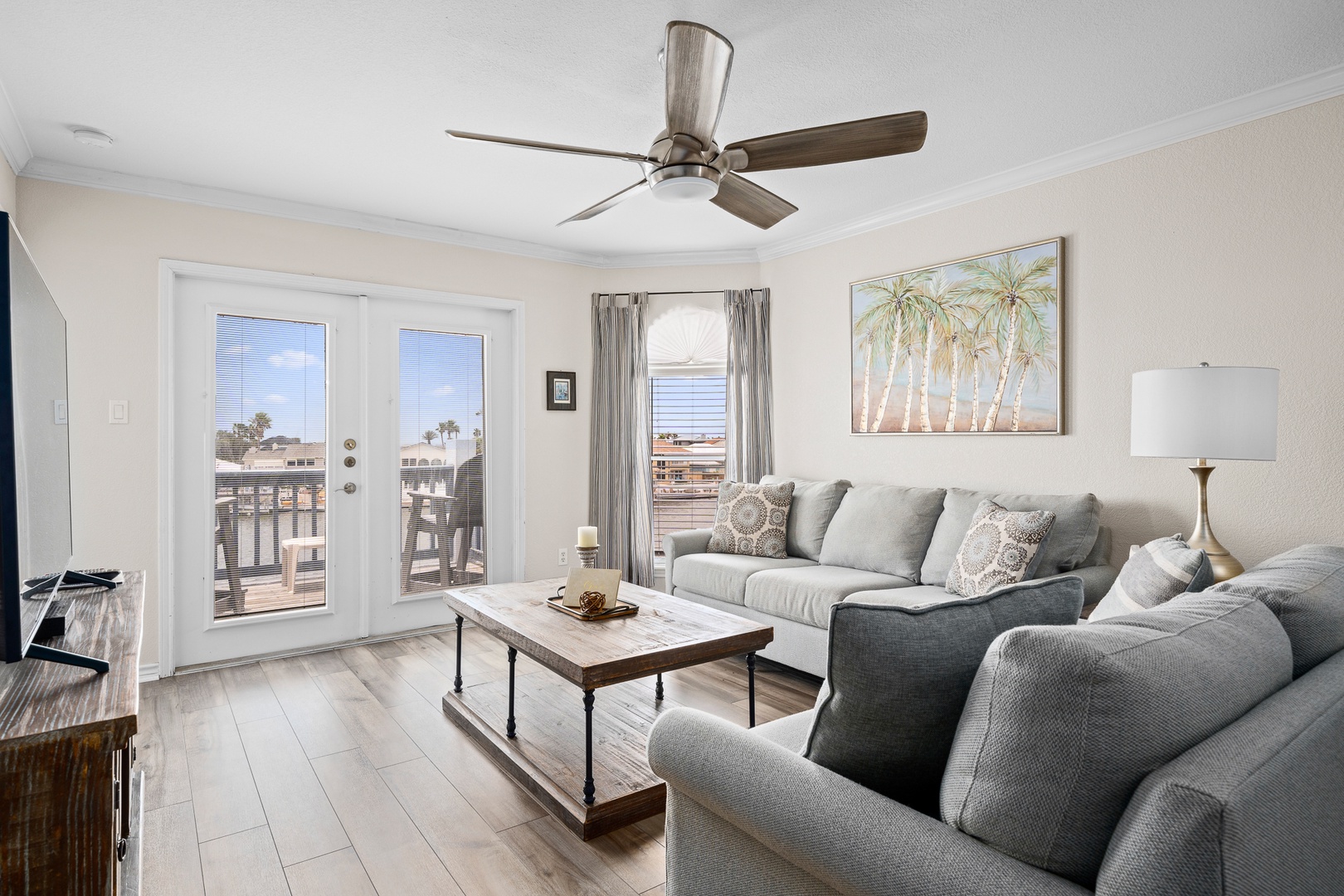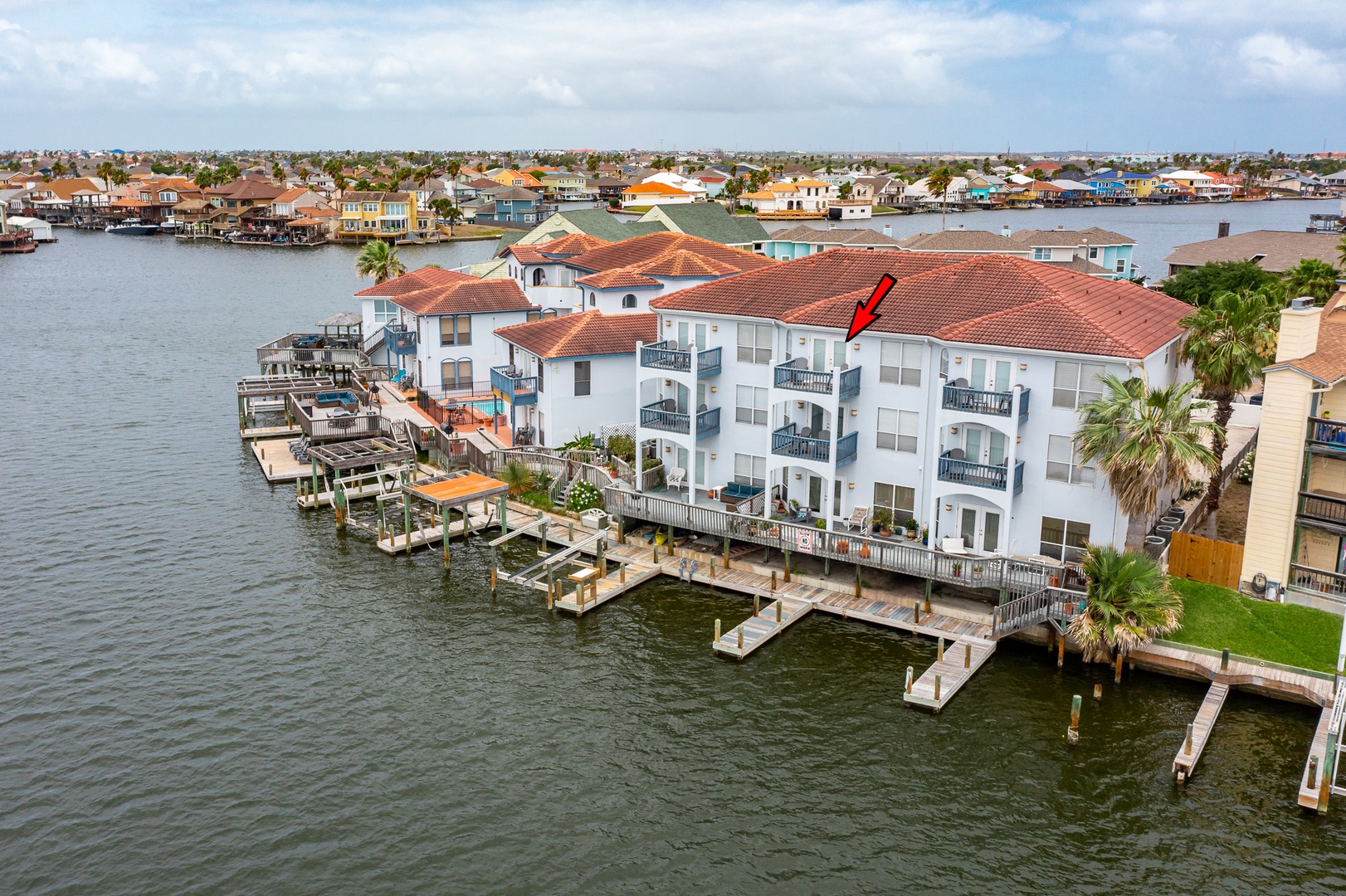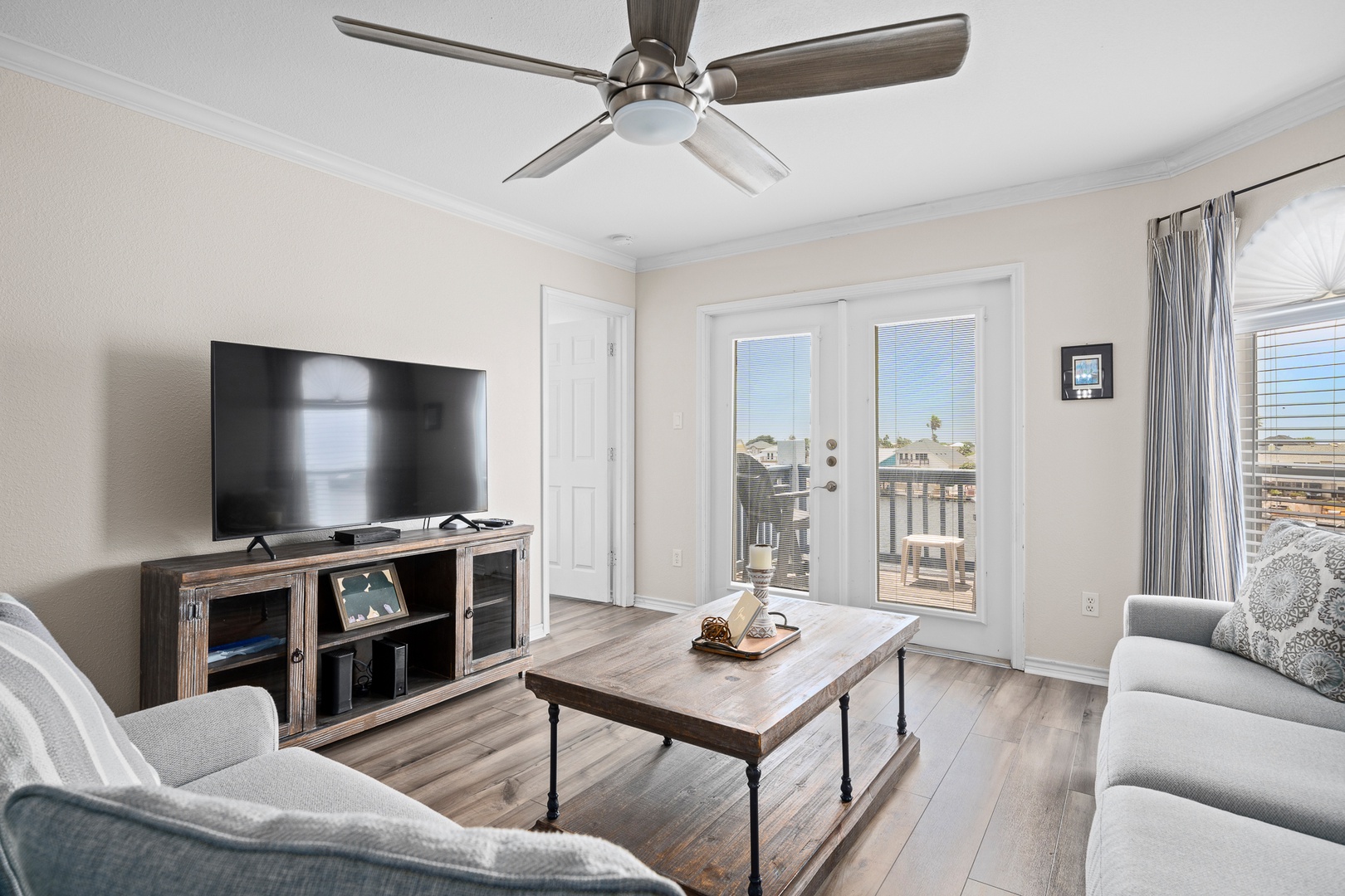 2 bedroom water front condo located on the 3rd floor allowing for spectacular sunset views from the private balcony. This condo is designed to comfortably sleep 4 and the complex amenities are sure to keep everyone satisfied! Take a dip in the pool, enjoy the water views while hanging out on the patio deck, or go fishing off the back pier! Need more adventure? Rent a golf cart and take the short drive to the beach or check out any of the local favorite restaurants. Make your memories here!