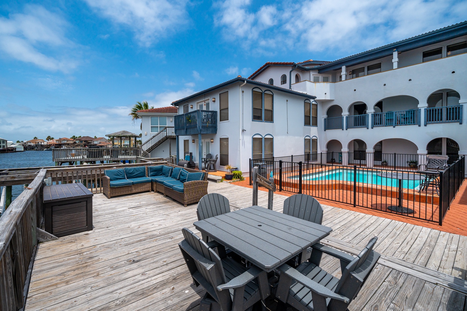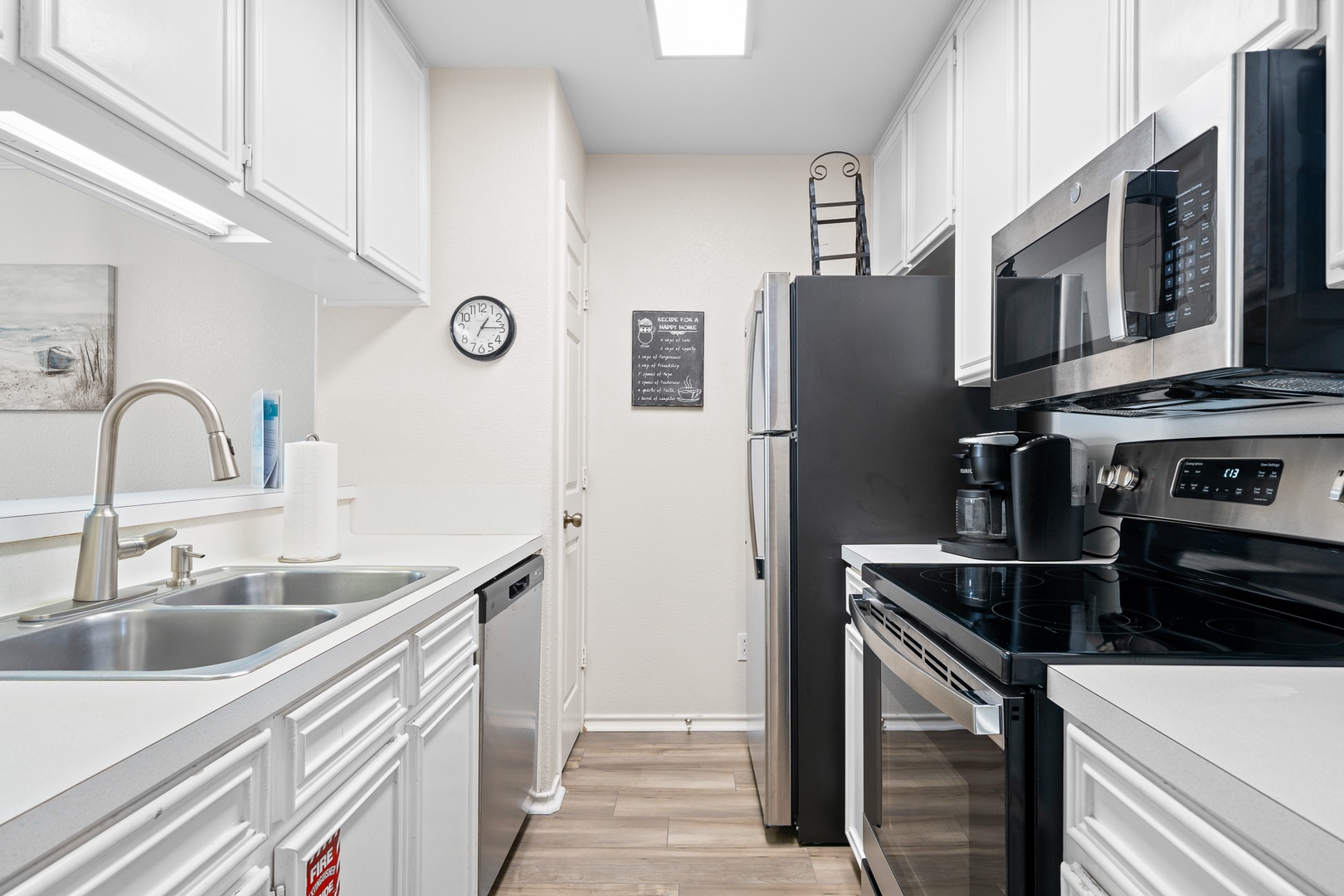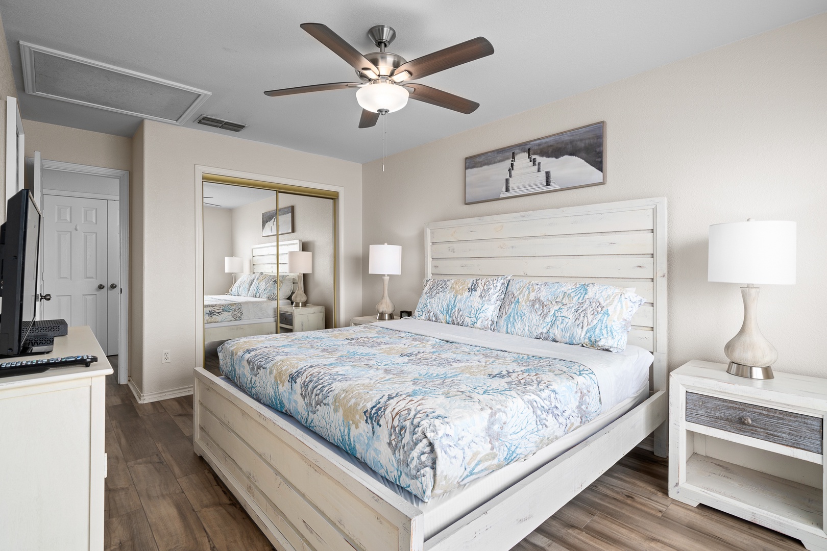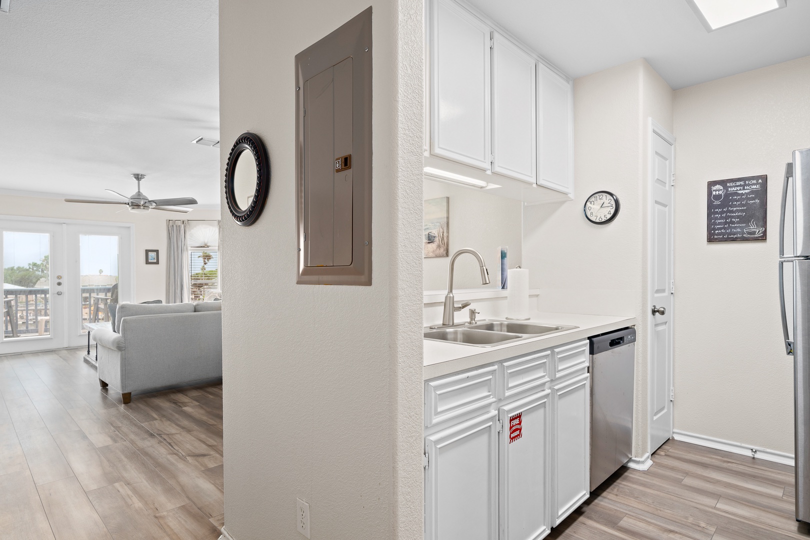 2 bedroom water front condo located on the 3rd floor allowing for spectacular sunset views from the private balcony. This condo is designed to comfortably sleep 4 and the complex amenities are sure to keep everyone satisfied! Take a dip in the pool, enjoy the water views while hanging out on the patio deck, or go fishing off the back pier! Need more adventure? Rent a golf cart and take the short drive to the beach or check out any of the local favorite restaurants. Make your memories here!