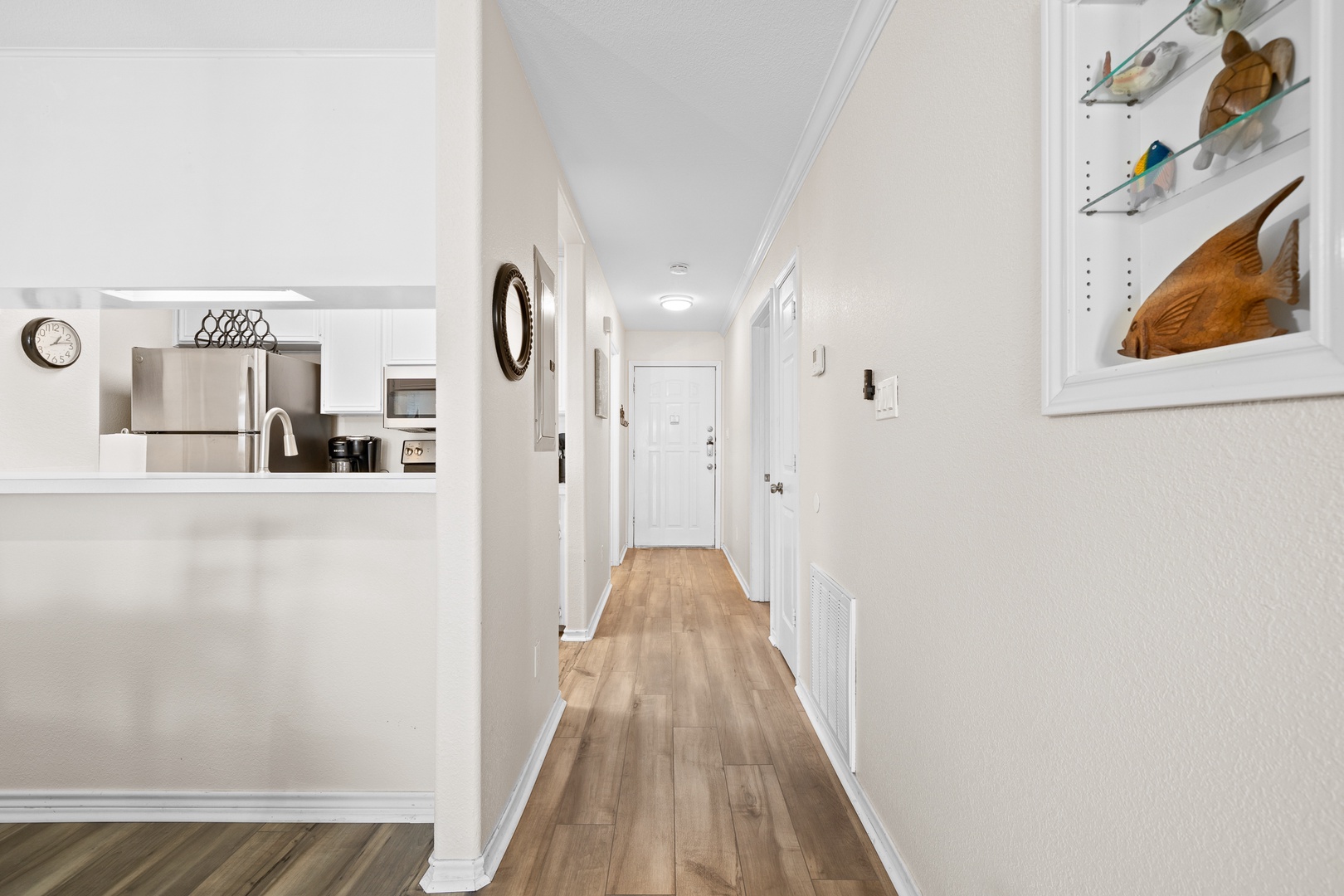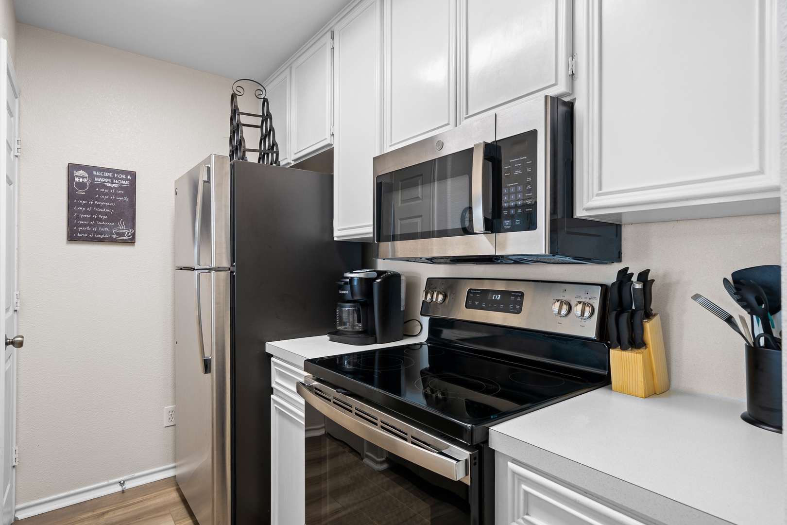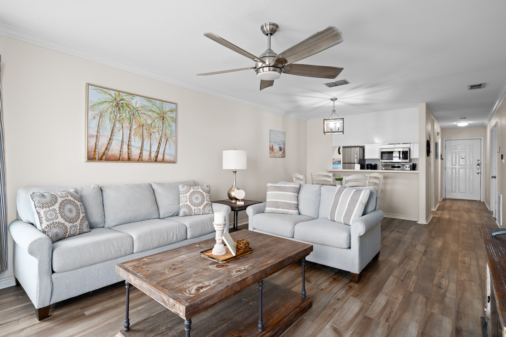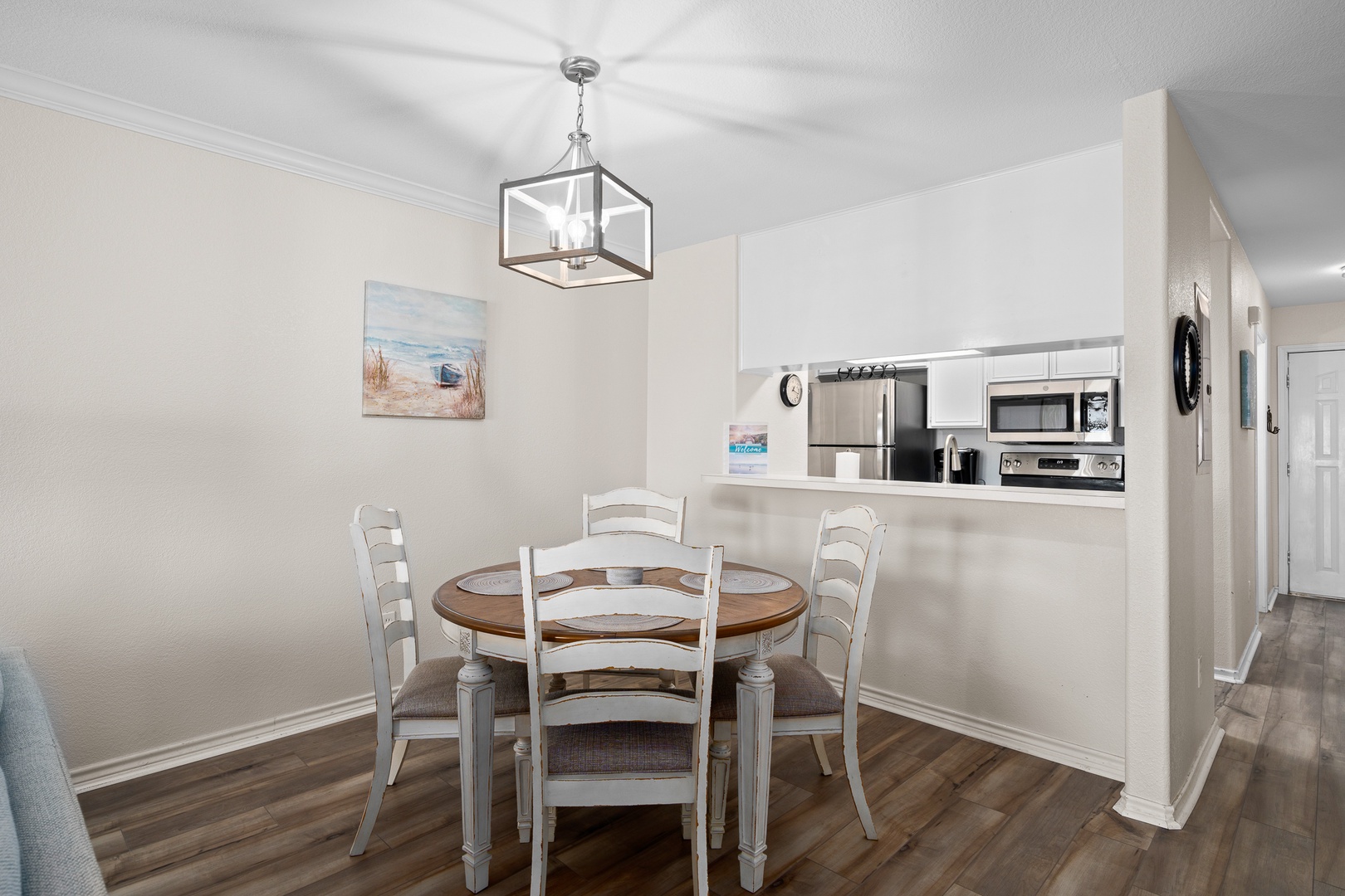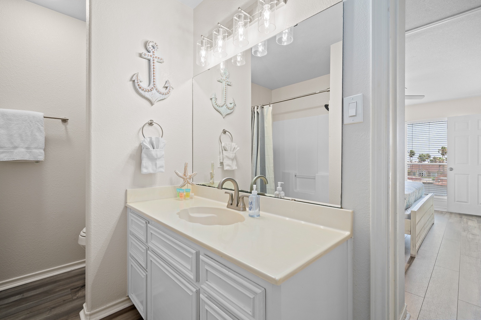 2 bedroom water front condo located on the 3rd floor allowing for spectacular sunset views from the private balcony. This condo is designed to comfortably sleep 4 and the complex amenities are sure to keep everyone satisfied! Take a dip in the pool, enjoy the water views while hanging out on the patio deck, or go fishing off the back pier! Need more adventure? Rent a golf cart and take the short drive to the beach or check out any of the local favorite restaurants. Make your memories here!