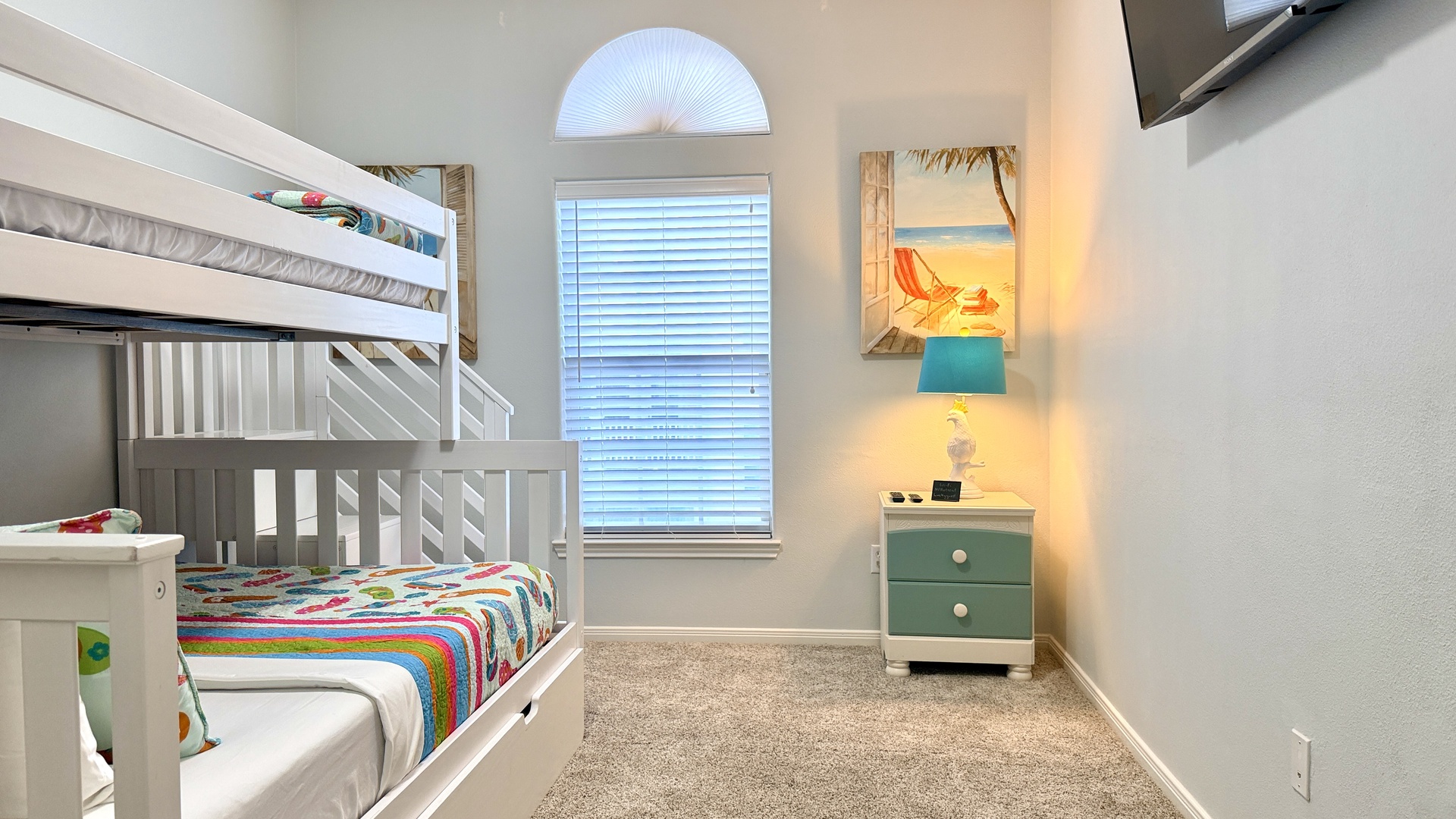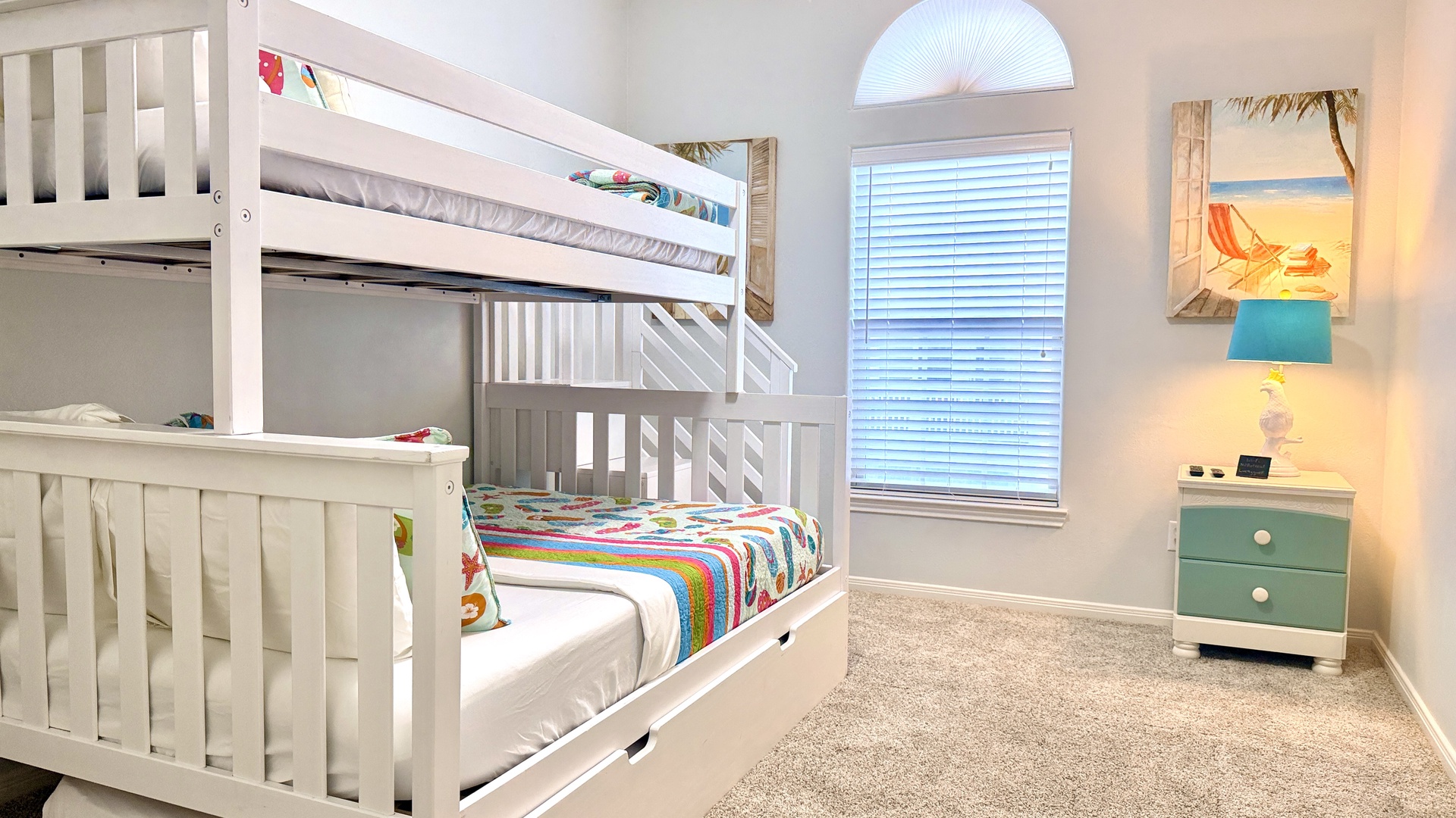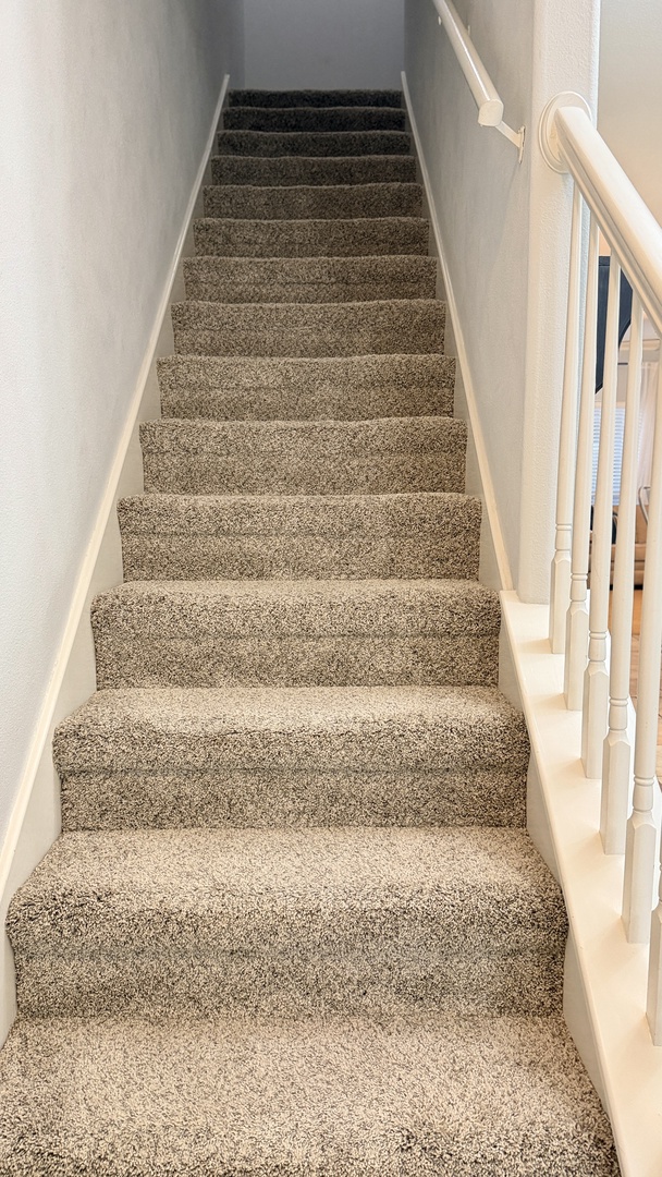 This 3 bedroom 2.5 bath property has a king, full, two twin beds, and another full size bed, to comfortably sleep 7. All bedrooms are on the second floor. There are no elevators.