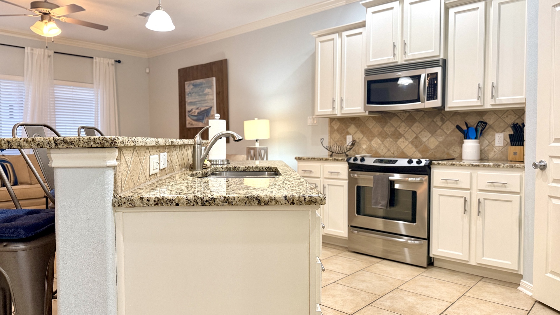This beautifully update condo will be the perfect vacation spot for your family or group of friends. This home offers many ways to relax whether it's sitting on the private back patio, lounging at the pool, fishing in the canal, or hanging at the beach that's about a mile away. Want to live the island life? Rent a golf cart, cruise around and check out some local restaurants and shops. Or stay close and take advantage of the fully stocked kitchen and cook for everyone! Just live on island time!