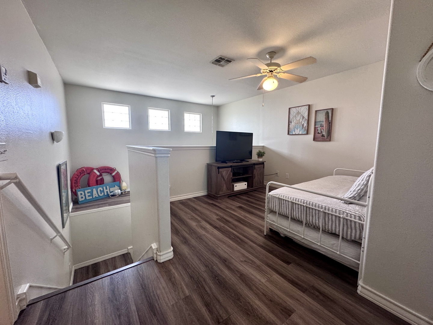 Spacious 3 bedroom condo just a mile from Whitecap Beach! This unit is fully furnished and comes with a king size bed in the downstairs master and places for 7 more to sleep upstairs. Enjoy the resort style pool that is right outside the back door or take an adventure and rent a golf cart for the day. This centrally located unit is next to locally favorite restaurants, shops, beaches, and Padre Island National Seashore. Don’t forget other in town hotspots such as the Aquarium and Lexington.