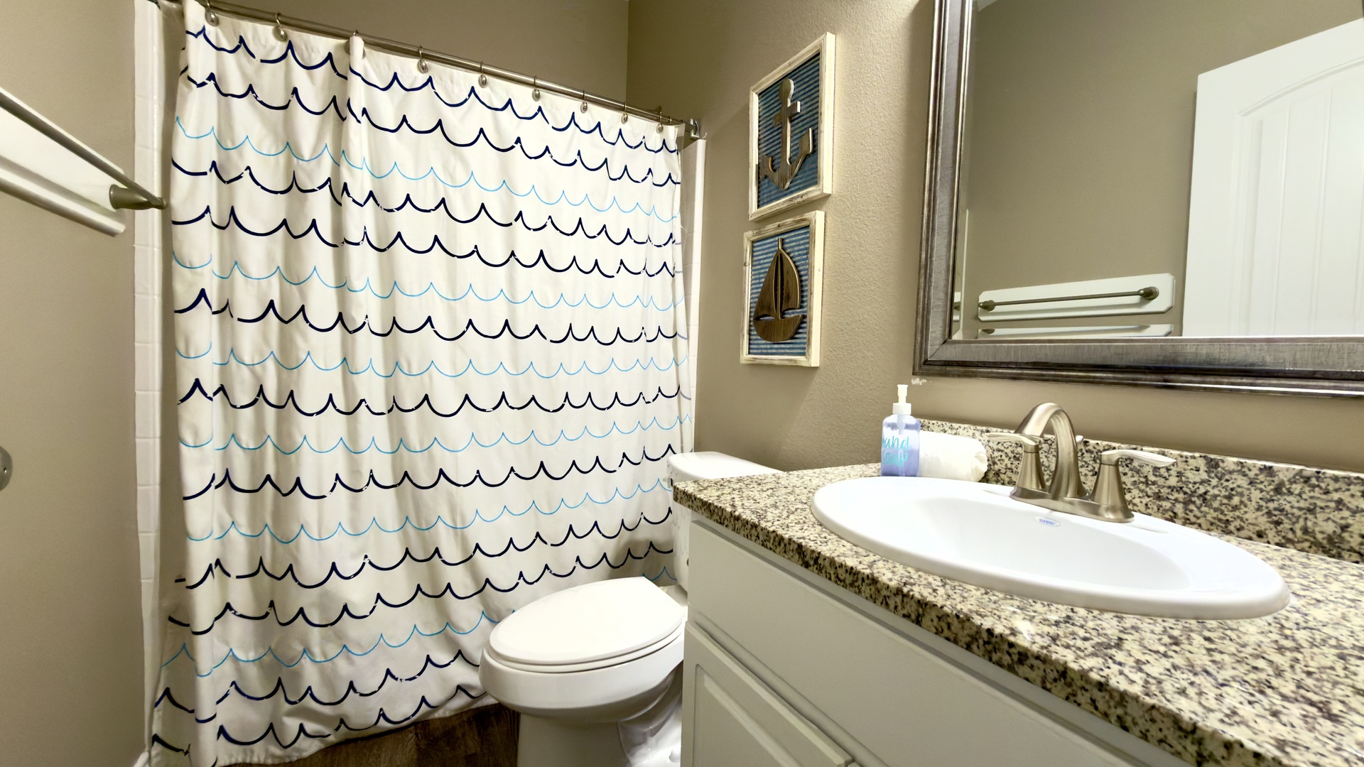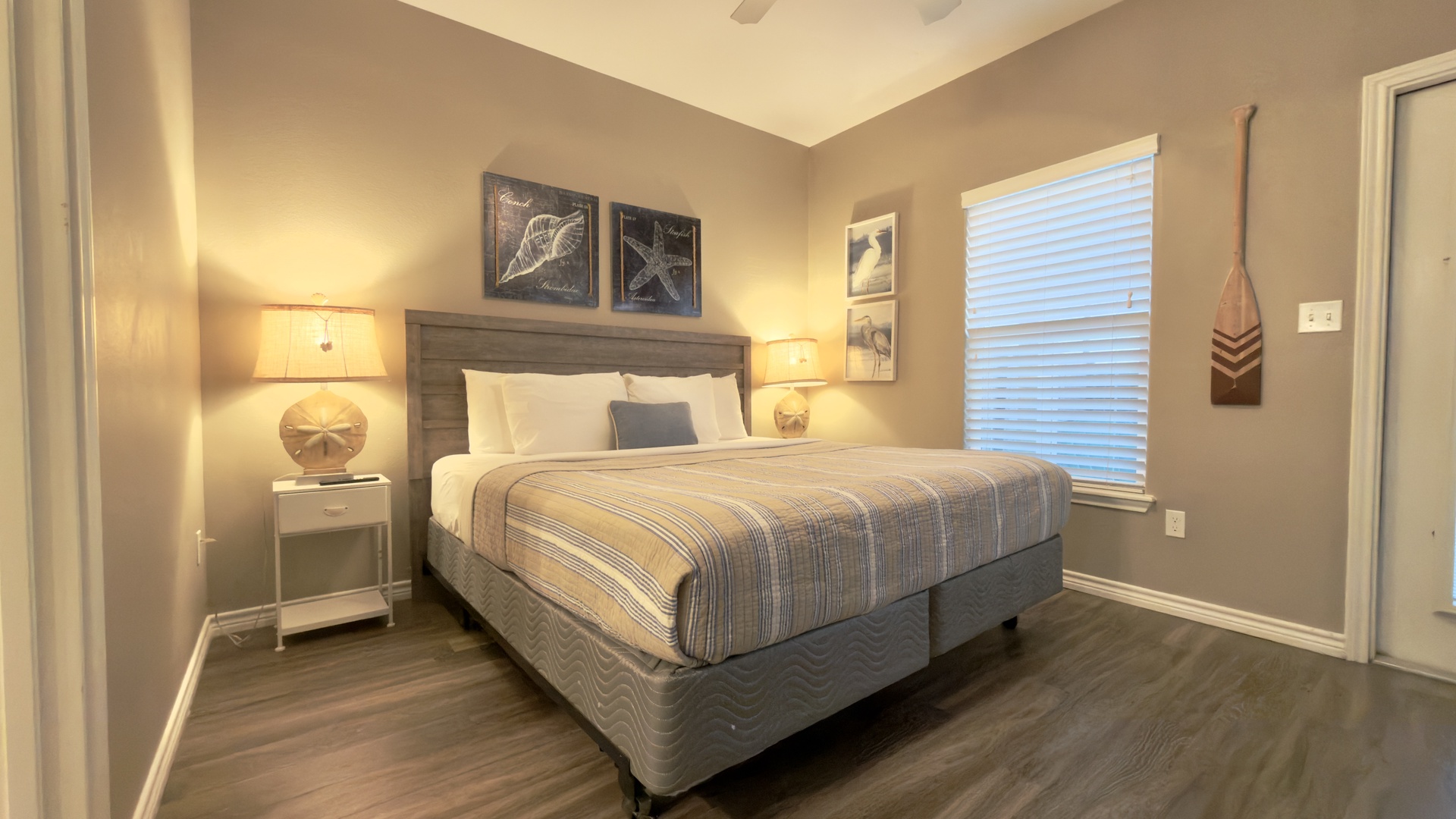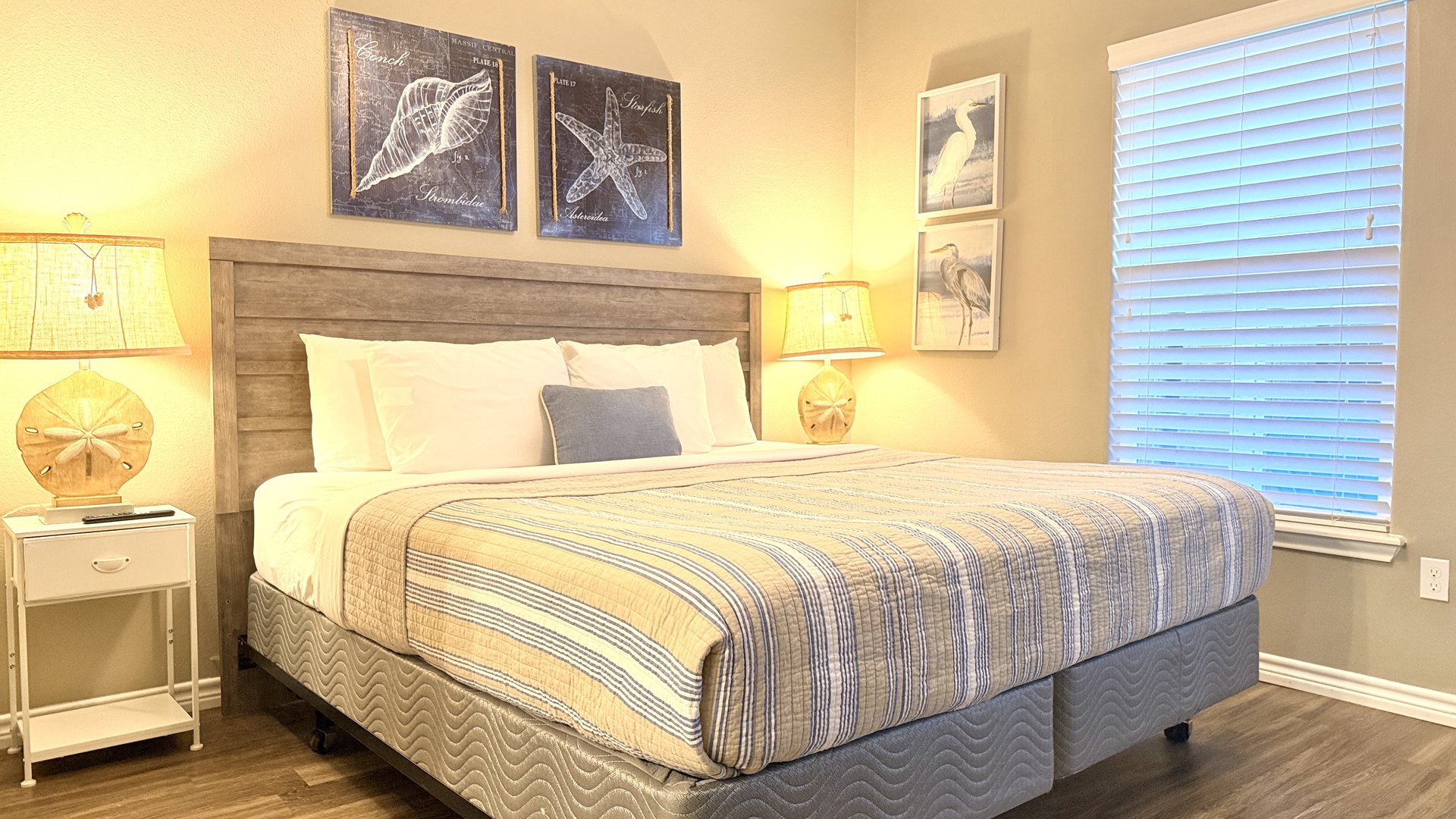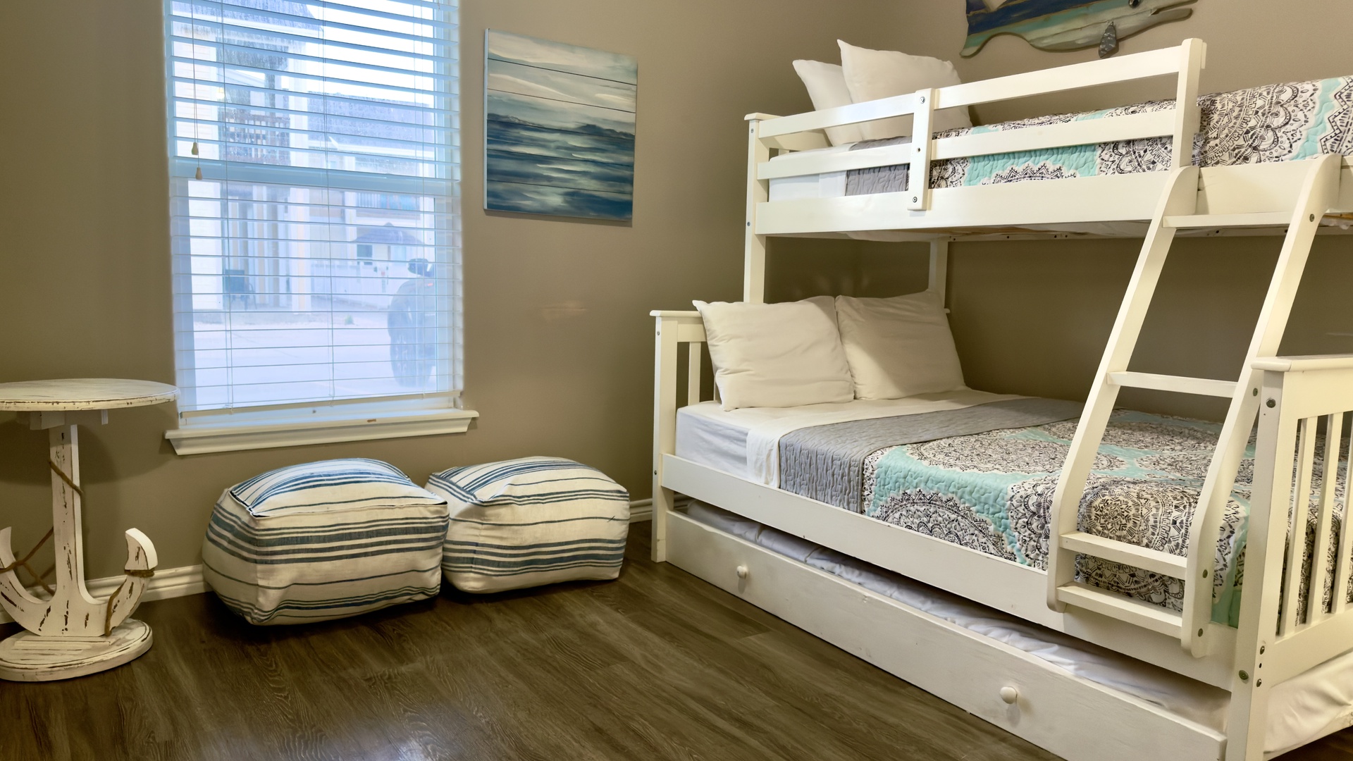 -2 Bedrooms: King bed in master bedroom, and a bunk bed with two twins and a full size bed in the guest room.