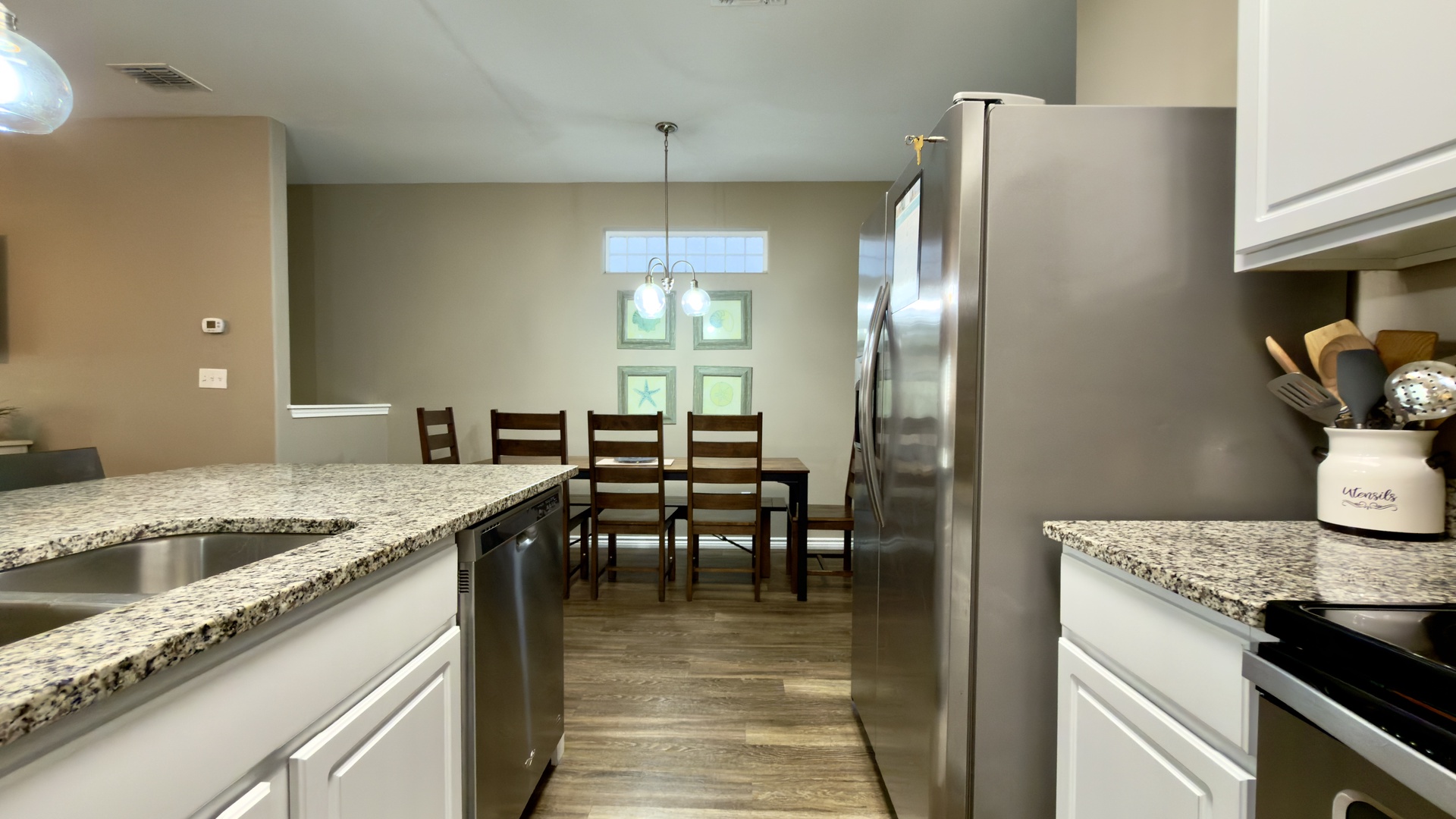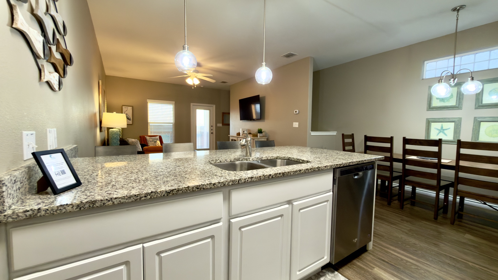 This unique lay out features all bedrooms, each with their own bathroom, and laundry room on the first floor. The second floor hosts the living spaces, kitchen, and an additional full bathroom. This may seem odd, but hear me out: the second story boasts amazing views of the dunes and nature from the private balcony on the second floor!