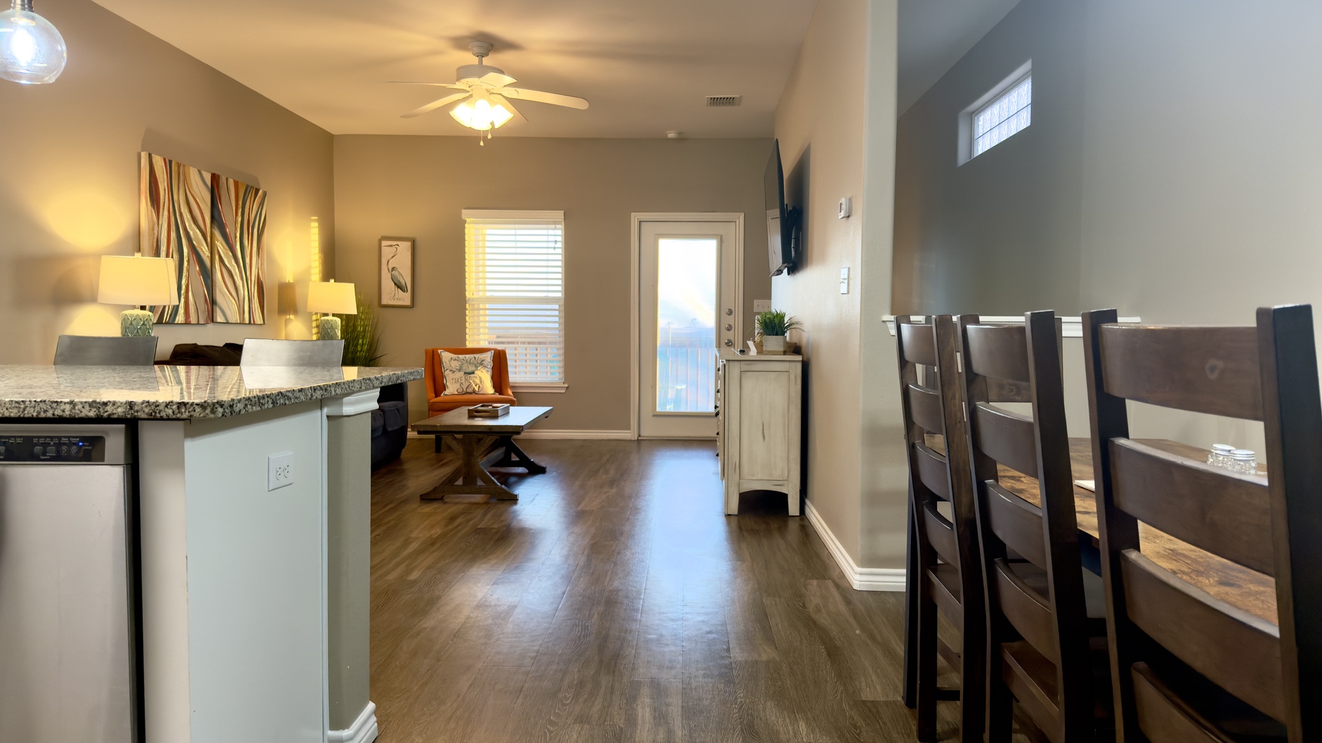 This home is a 2 bedroom town home at Village by the Beach. This unit faces the dunes and is super close to the beach! A short 5 minute walk, and you are relaxing on the sandy shores of Padre Island! This is a two story home, so stairs are required to access the second floor.